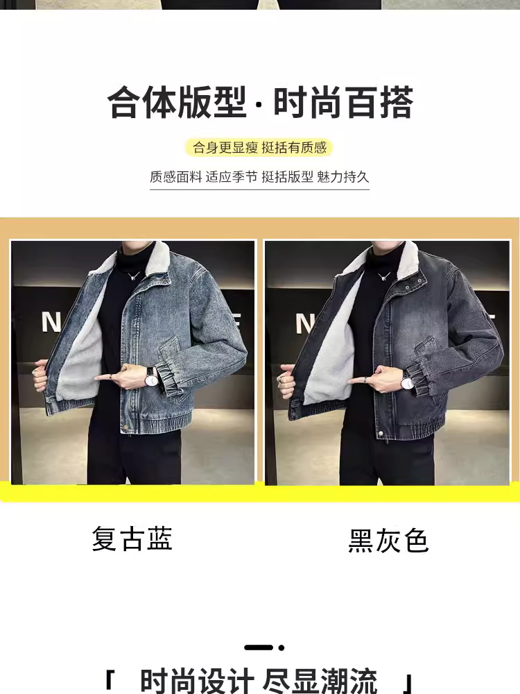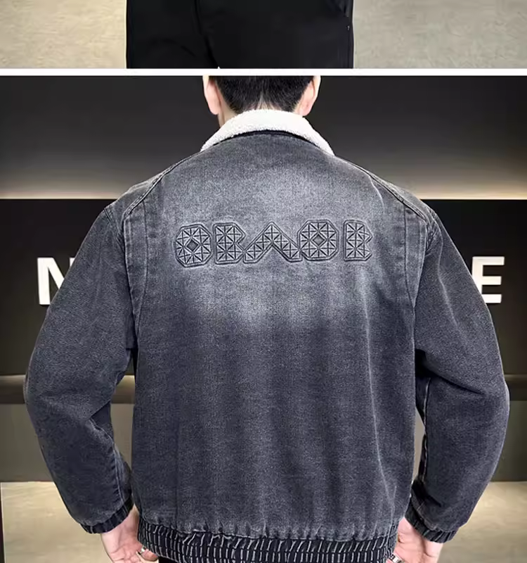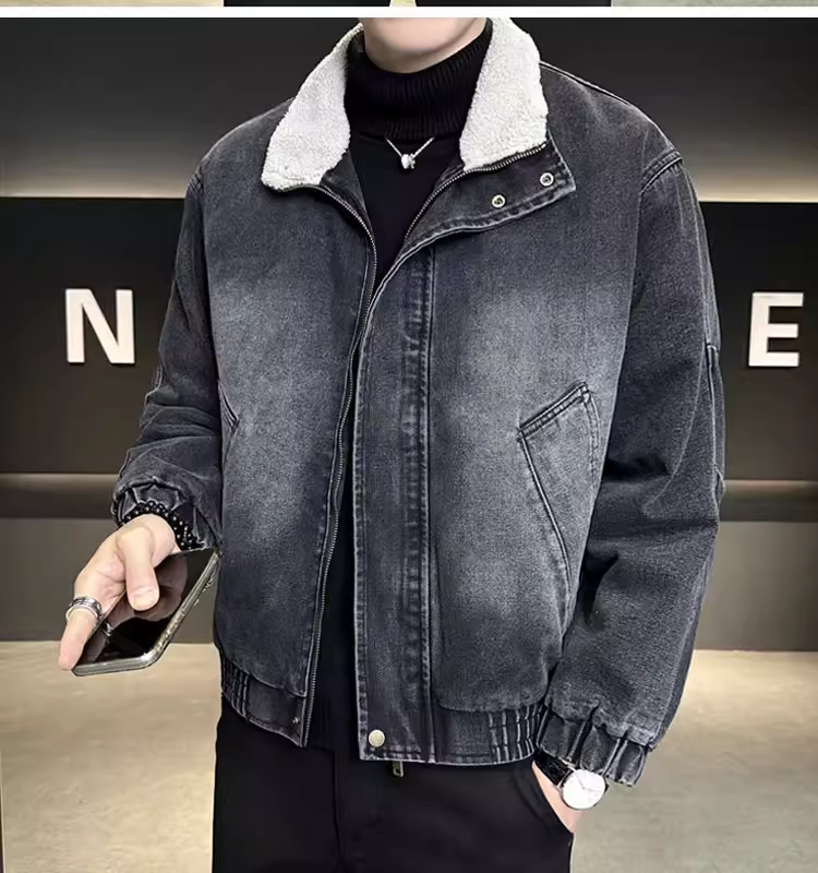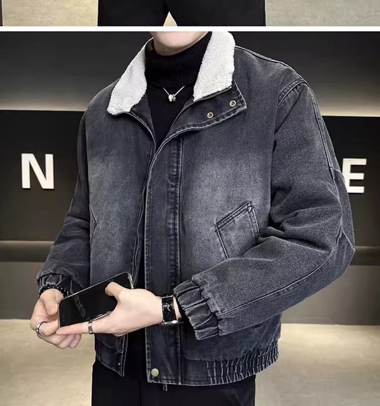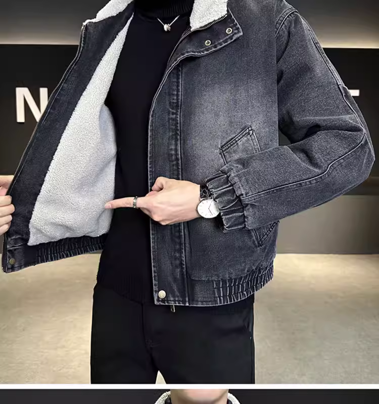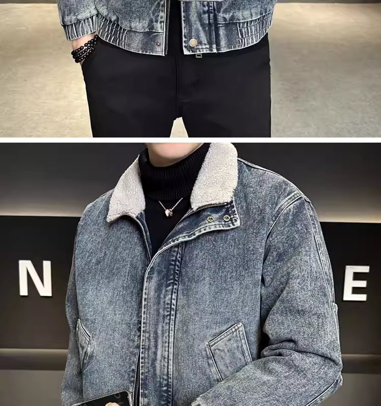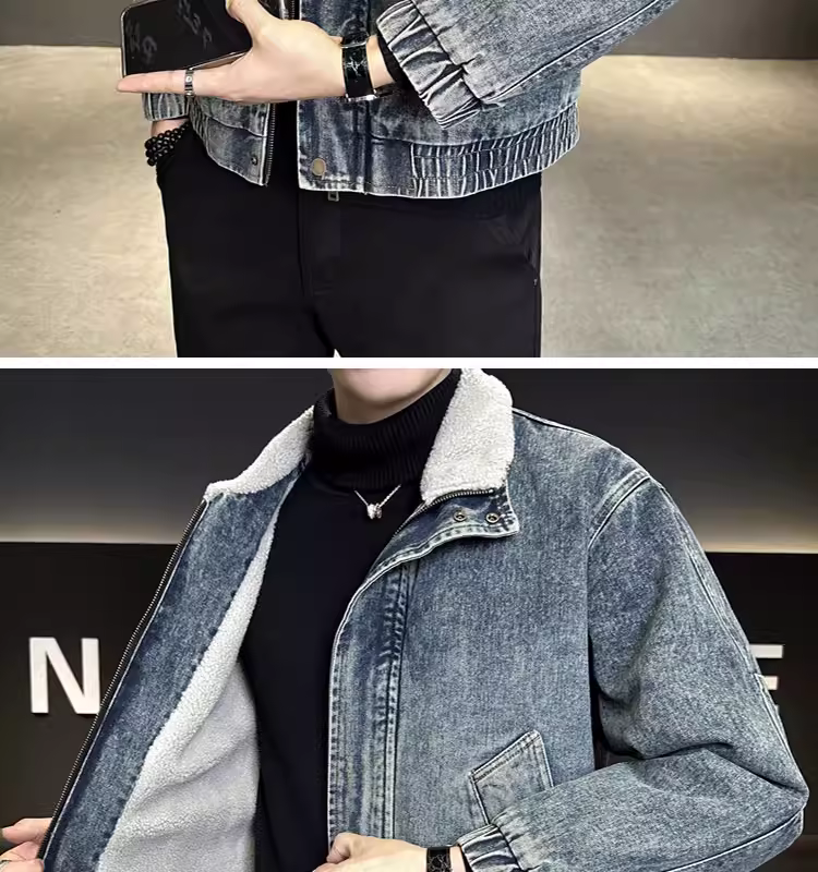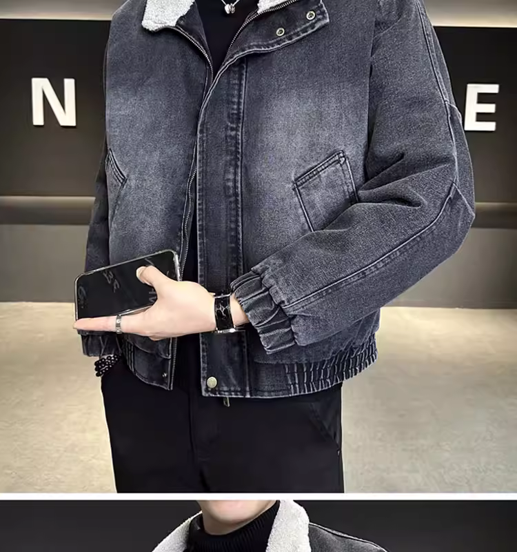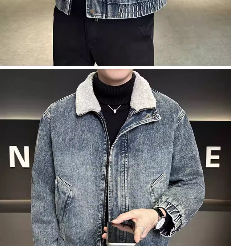 - Áo khoác denim dày lót lông cừu dành cho nam, mùa đông 2025, chất lượng cao, kiểu dáng rộng, ngắn