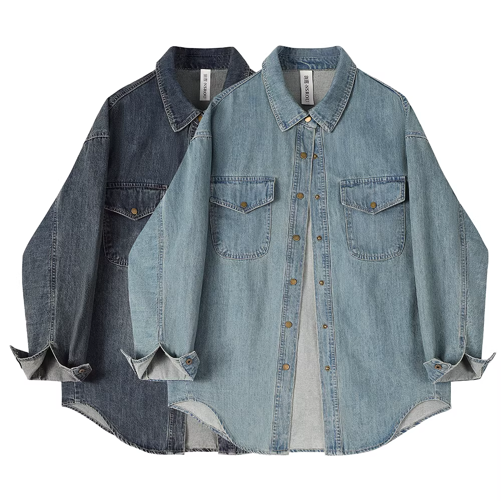 - Áo khoác denim kiểu dáng cổ điển, phong cách lười biếng kiểu Pháp dành cho nữ, áo dài tay độc đáo và sang trọng cho mùa xuân và mùa thu.