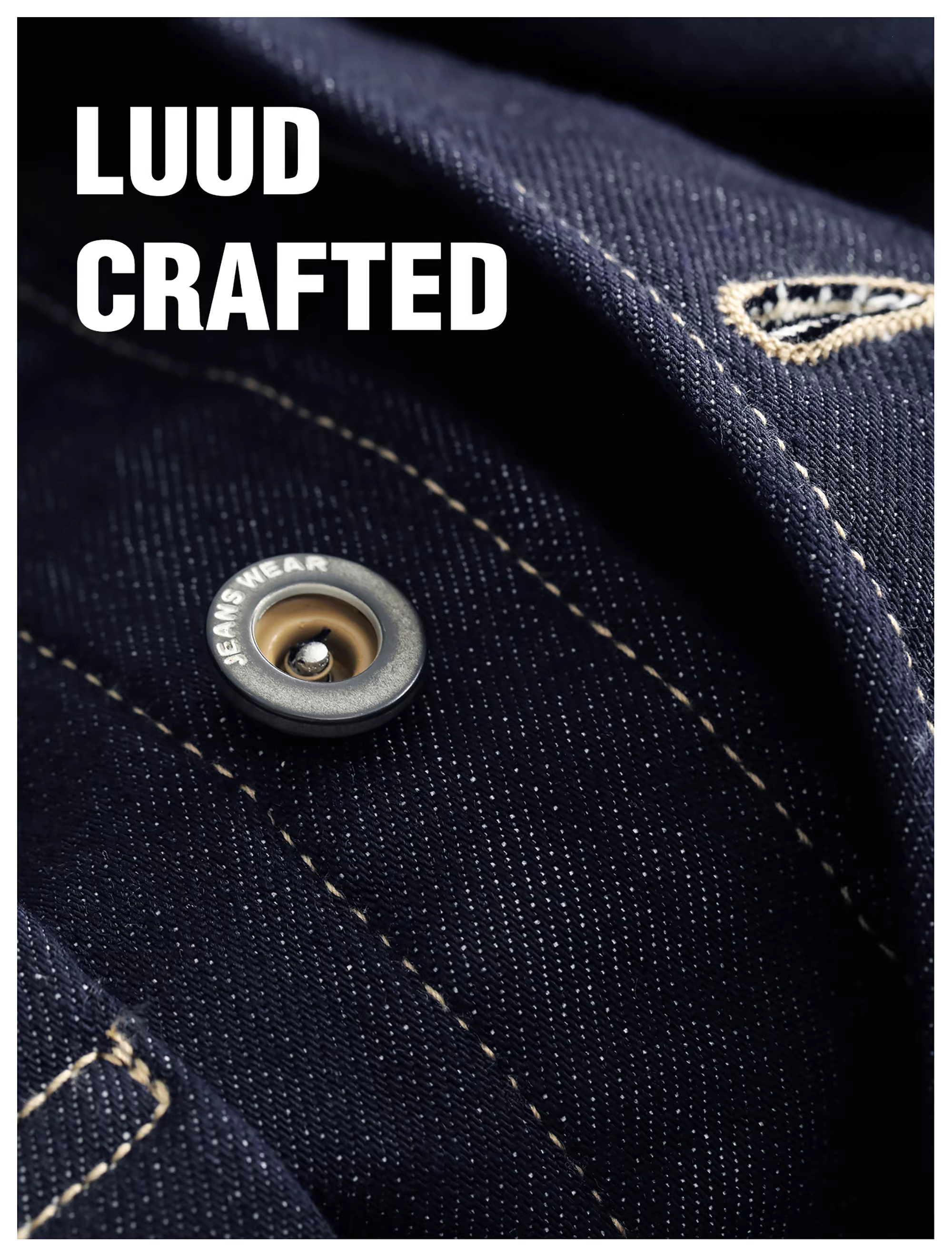 Áo khoác denim lyocell ấm áp mùa đông dành cho nam LUUD có lớp lót lông cừu, ve áo bằng len cừu, áo khoác một hàng khuy