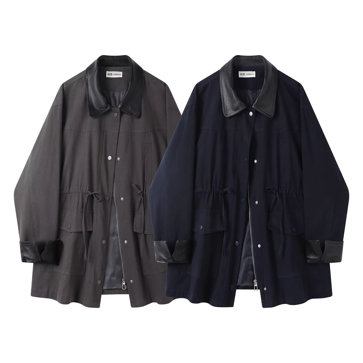 - Áo khoác denim màu xanh đậm phong cách retro kiểu Mỹ dành cho nữ, áo khoác măng tô dài trung bình, phối vải vá, mùa thu sớm