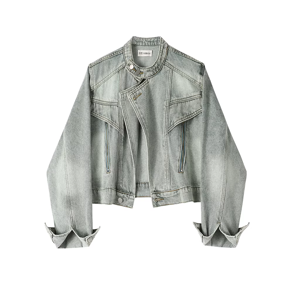 - Áo khoác denim ngắn thiết kế retro Mỹ dành cho nữ, mẫu mới xuân thu 2025, độc đáo, siêu thời trang
