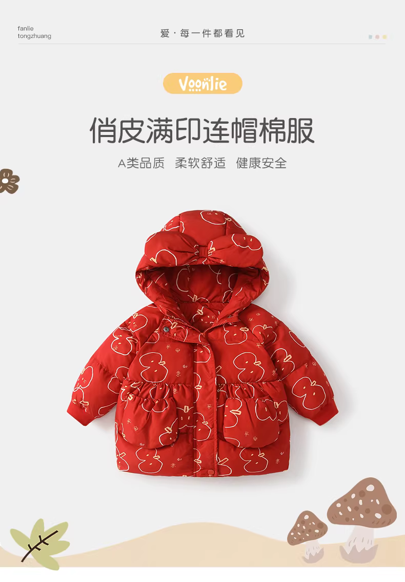 - Áo khoác độn bông cho bé gái quần áo mùa đông quần áo trẻ em sành điệu áo khoác cotton ấm áp có mũ trùm đầu cho bé áo khoác cotton mùa đông
