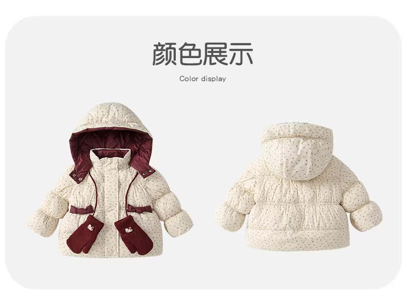 - Áo khoác độn bông cho bé gái quần áo mùa đông quần áo trẻ em sành điệu lót lông cừu chần bông ấm áp cho bé có mũ trùm đầu mùa đông