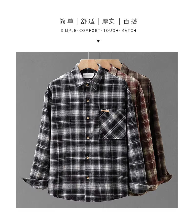 - Áo khoác kẻ sọc flannel dày 400G dành cho nam, phong cách thu đông, áo sơ mi dài tay cổ điển kiểu Mỹ ấm áp kẻ sọc dành cho nam