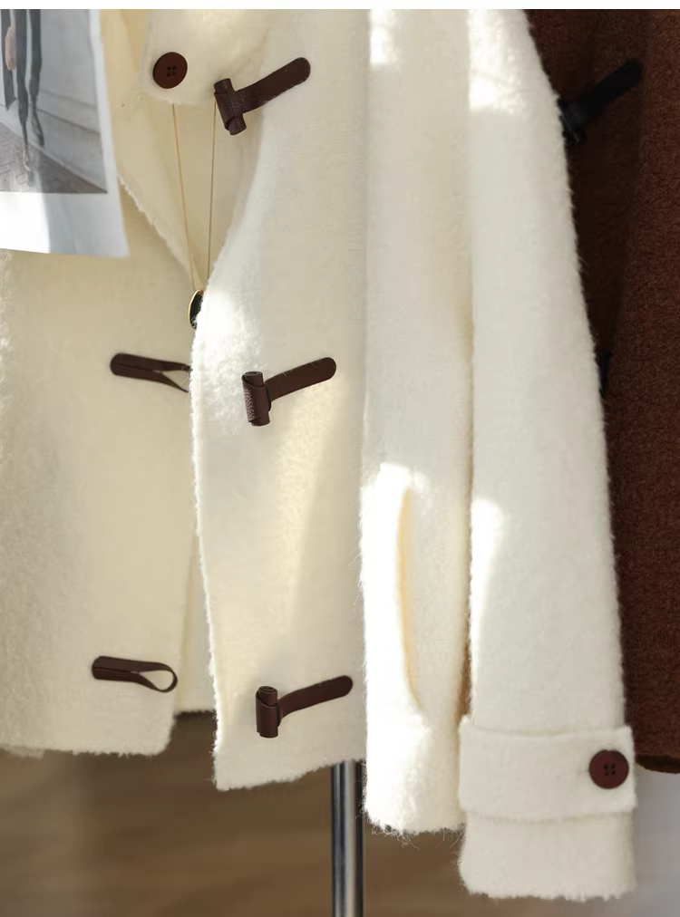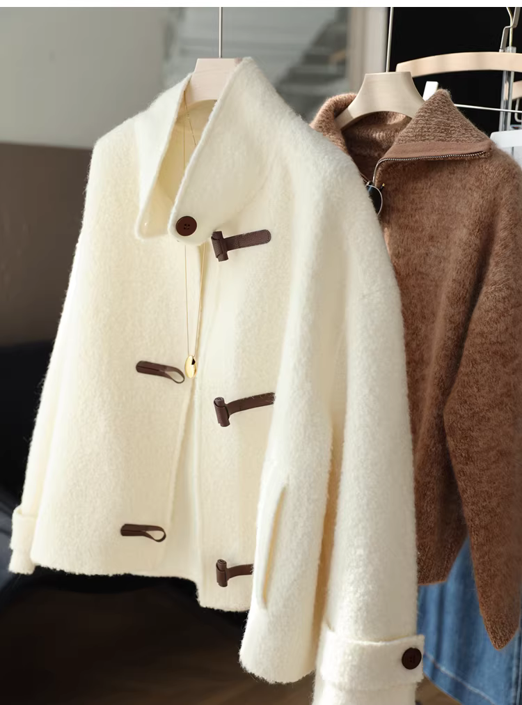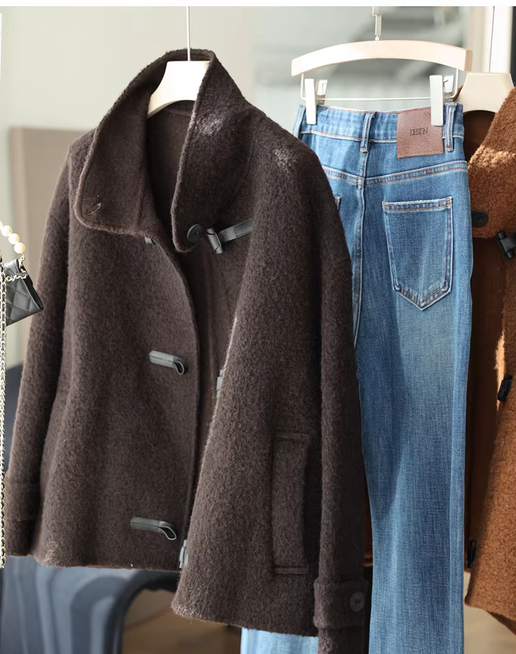 - Áo khoác len alpaca Suli có cổ đứng và thiết kế khóa da, áo khoác len hai mặt dành cho phụ nữ nhỏ nhắn, mùa thu đông.