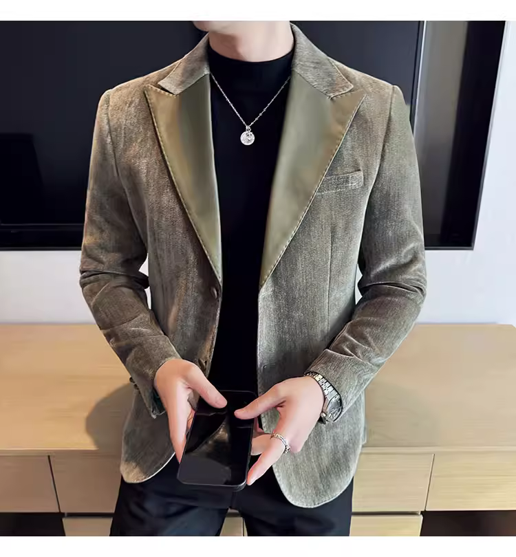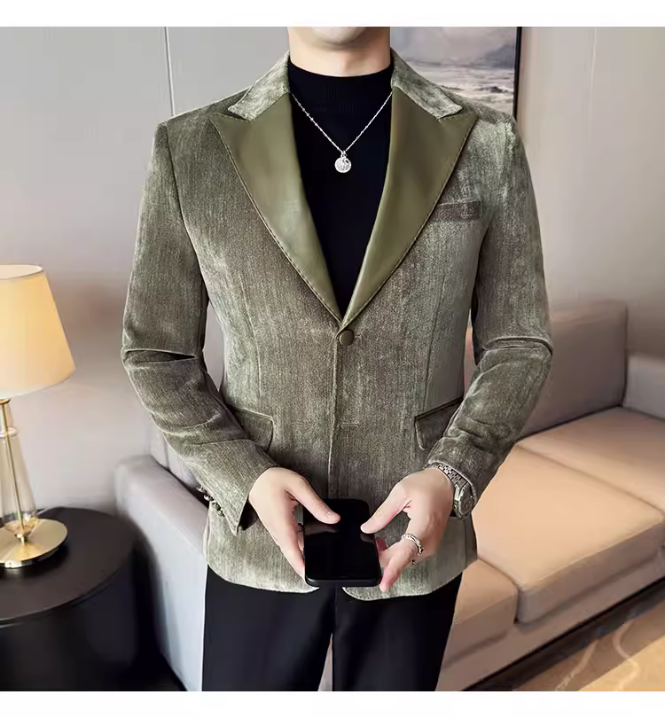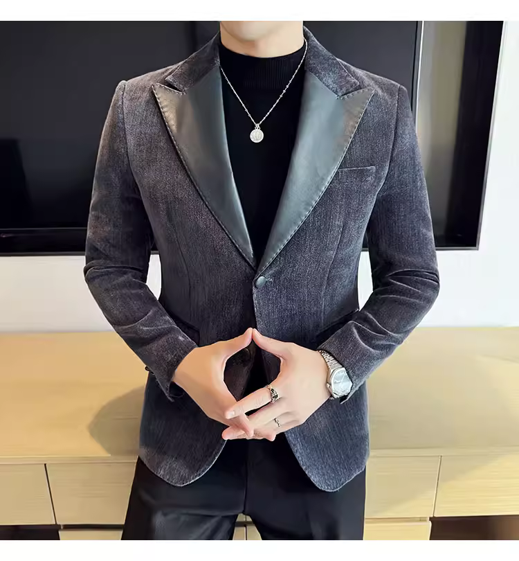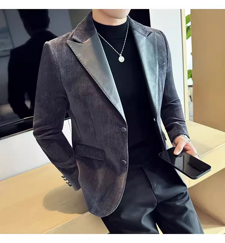 - Áo khoác len chắp vá bằng da dành cho nam, phong cách thu đông mới, thời trang cao cấp, trang phục công sở thông thường, bộ đồ ôm vừa vặn