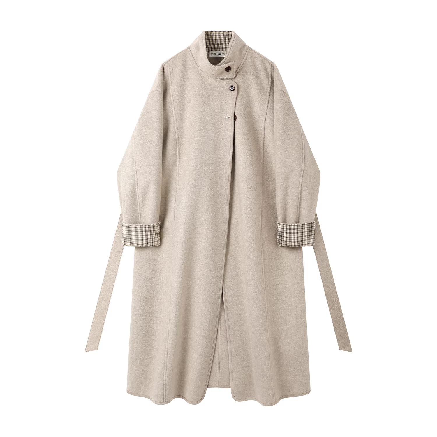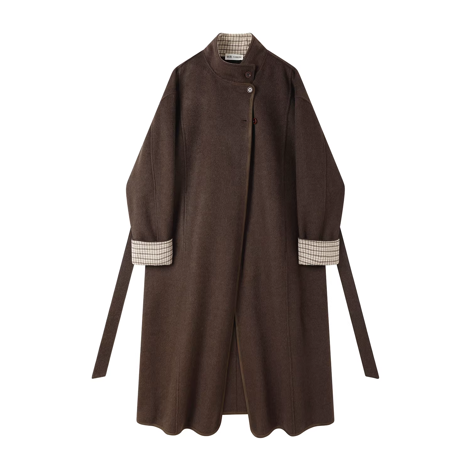 - Áo khoác len cổ đứng kiểu Anh phong cách Hàn Quốc dành cho nữ, áo khoác dáng dài vừa phải có dây buộc eo mùa thu đông