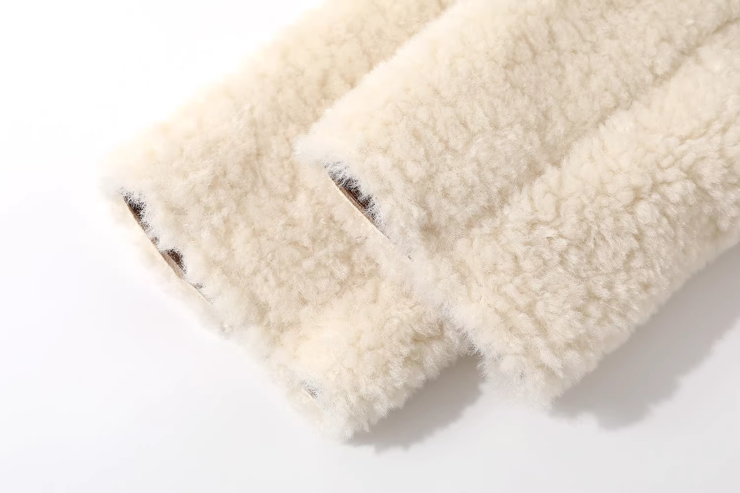 - Áo khoác len cừu cổ điển cao cấp NSROU, dày dặn cho mùa thu đông, áo khoác lông thú dài vừa phải dành cho nữ.