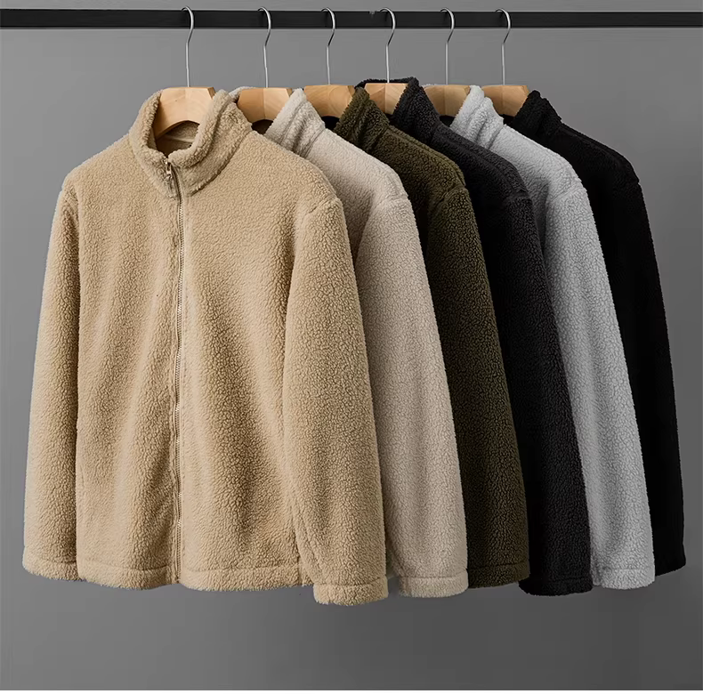 Áo khoác len cừu hai mặt dành cho nam, phong cách thu đông, phong cách Mỹ, lót lông cừu, dày dặn, áo khoác lông cừu ấm áp, cổ đứng, áo khoác cardigan có khóa kéo.