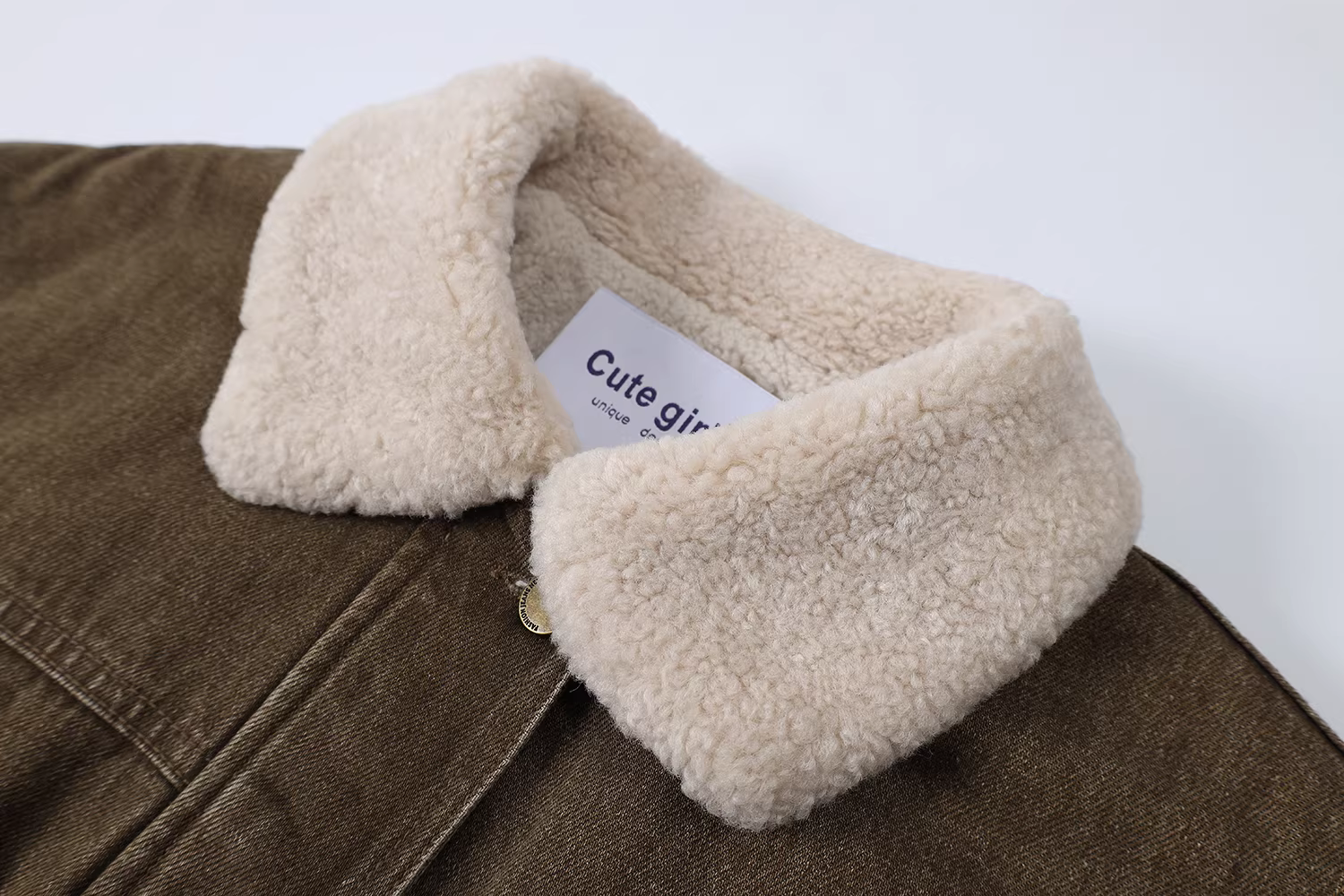 - Áo khoác len cừu kiểu Mỹ cổ điển CuteGirl dành cho nữ mùa đông 2025, áo khoác denim Melard dày dặn mới