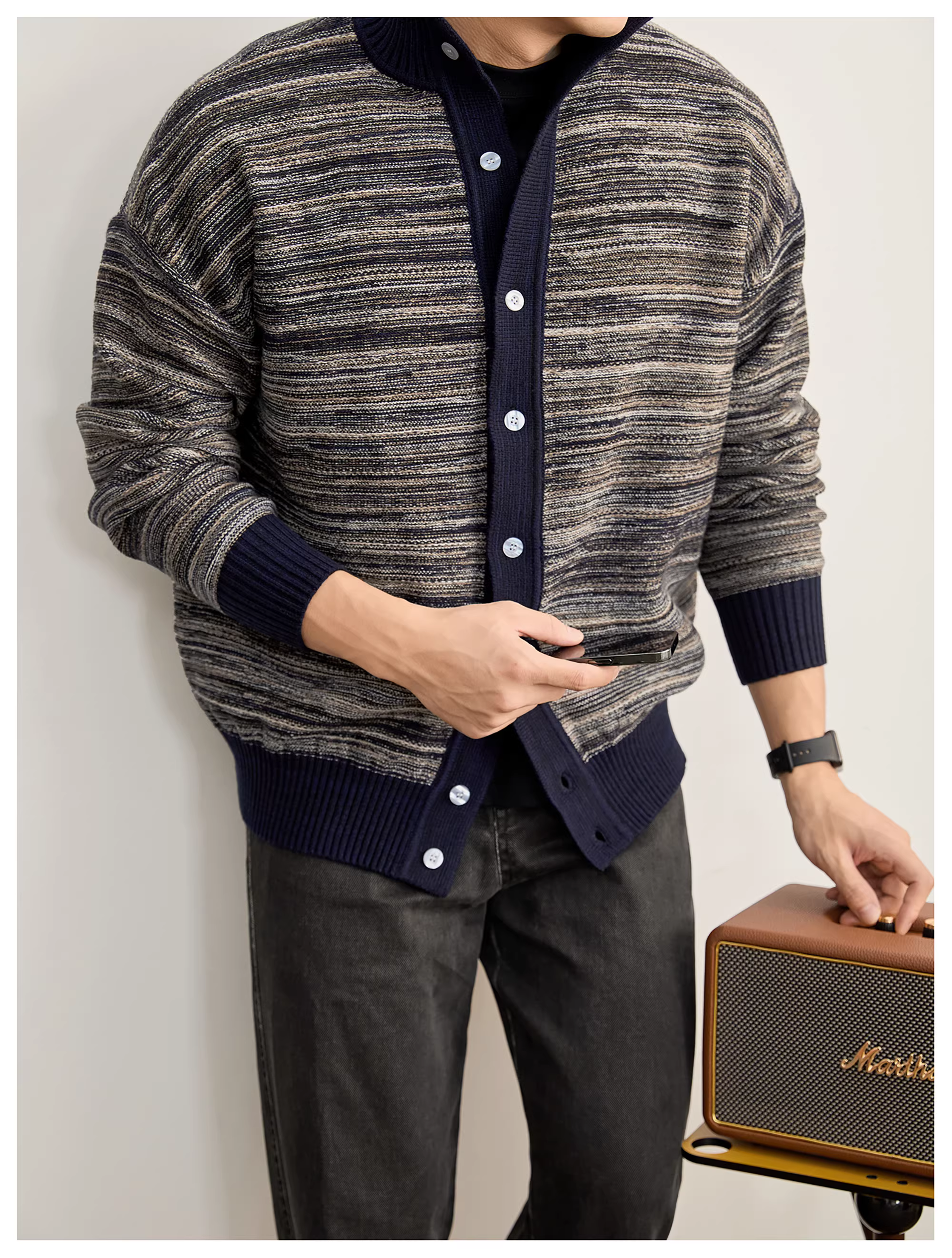 - Áo khoác len dệt kim phối màu gradient LUUD, chất liệu modal chống xù, cổ nửa cao dành cho nam