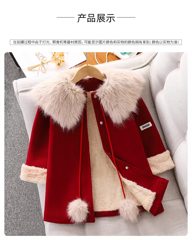 - Áo khoác len đỏ lót lông cừu cho bé gái, mẫu mới thu đông 2025, áo khoác len Tết thiếu nhi, trang phục Tết lễ hội cho bé gái