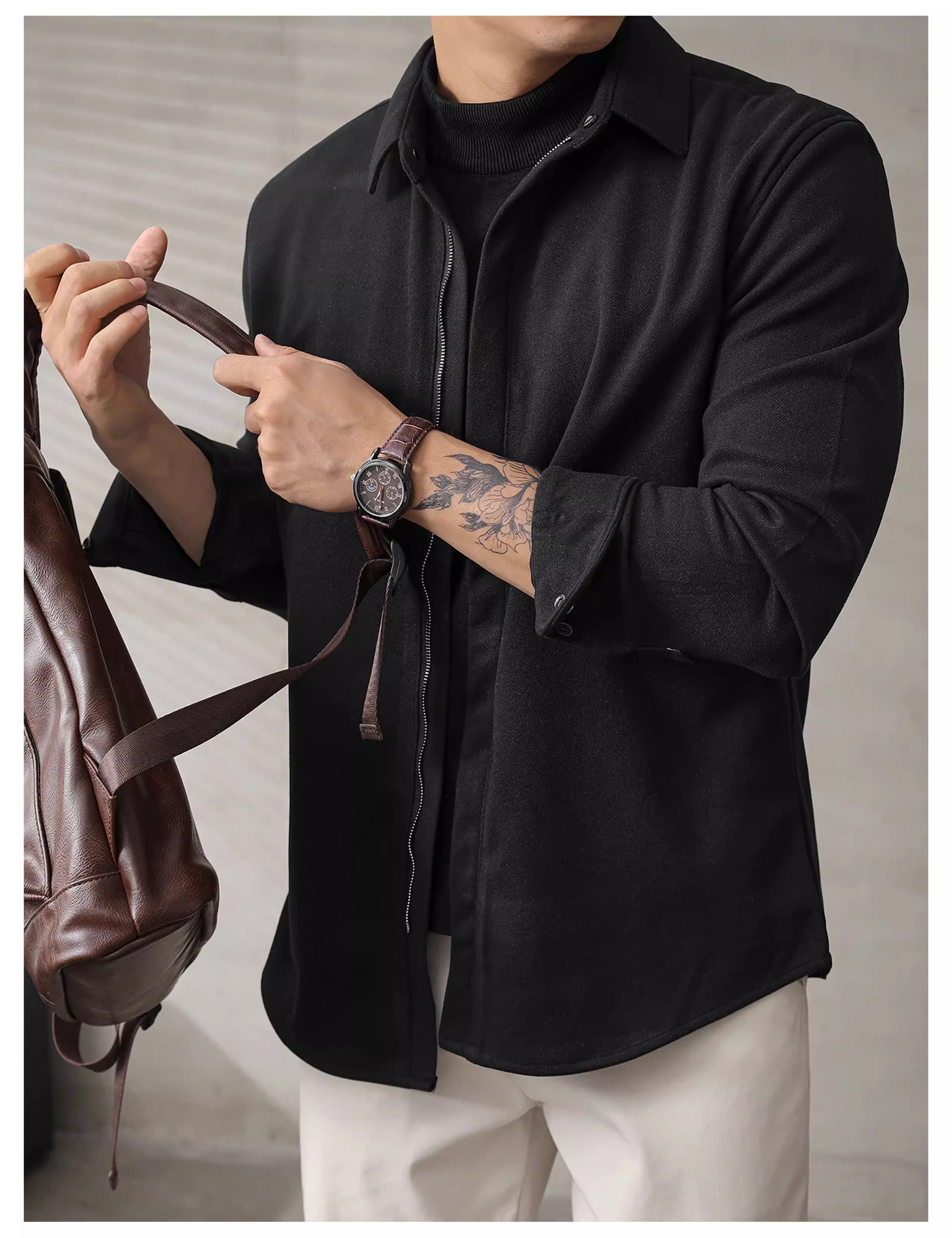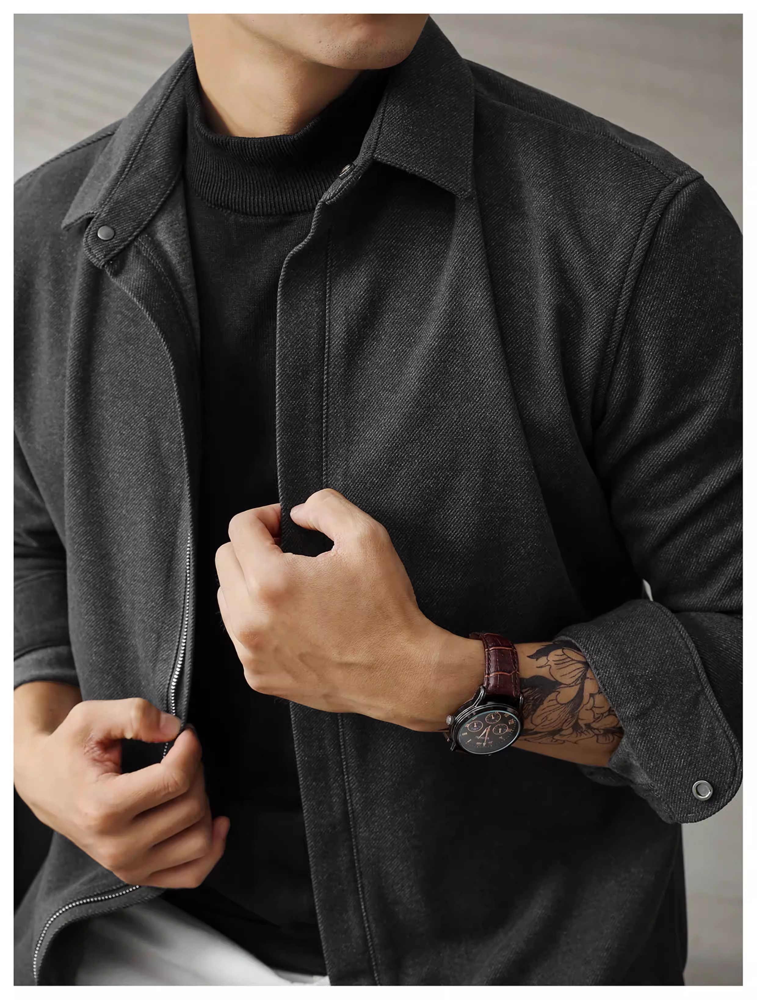 Áo khoác len giả hai mảnh có cổ áo kiểu dáng thời trang dành cho nam LUUD, dáng ôm vừa vặn, áo sơ mi hàng ngày đa năng