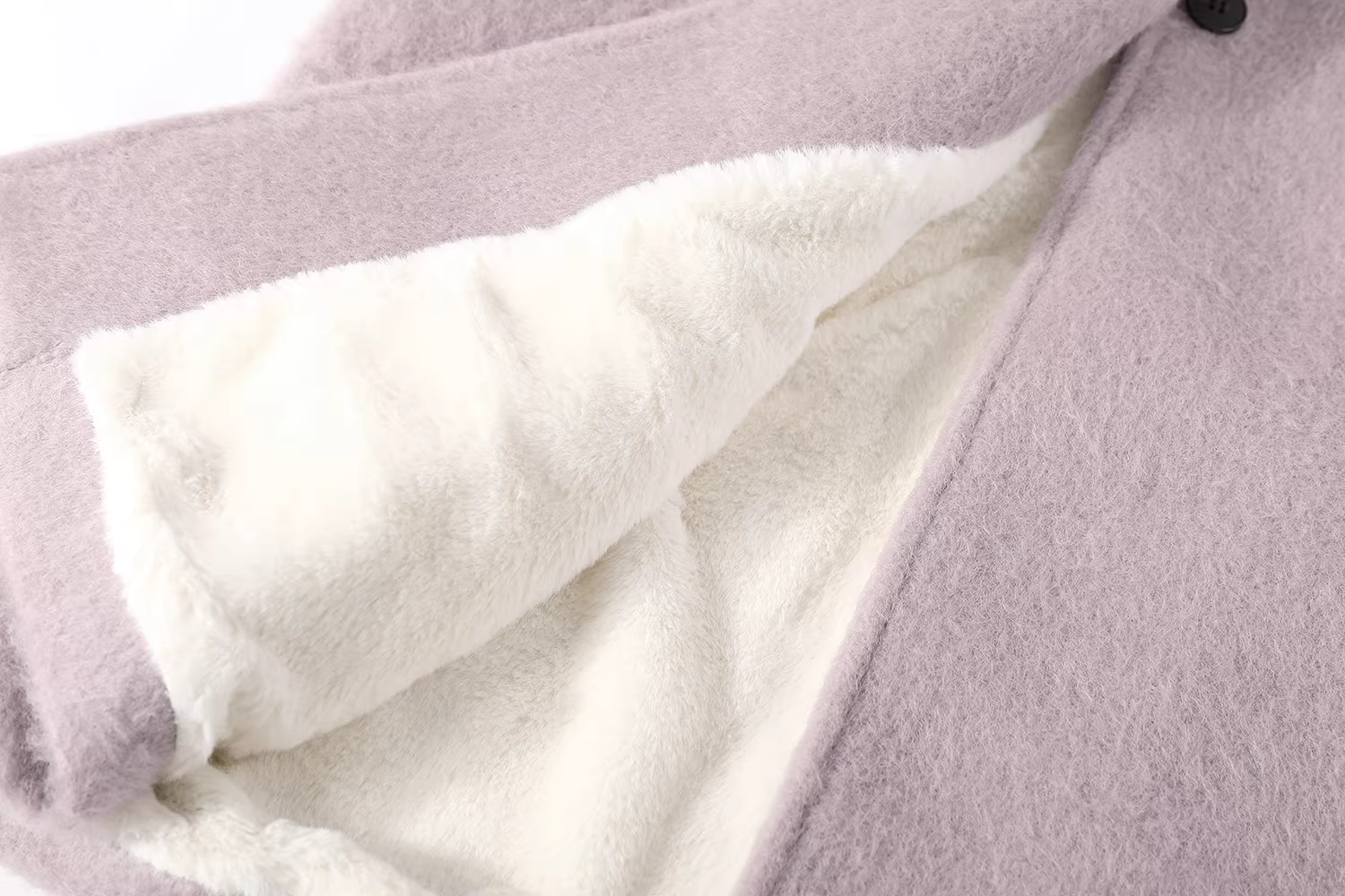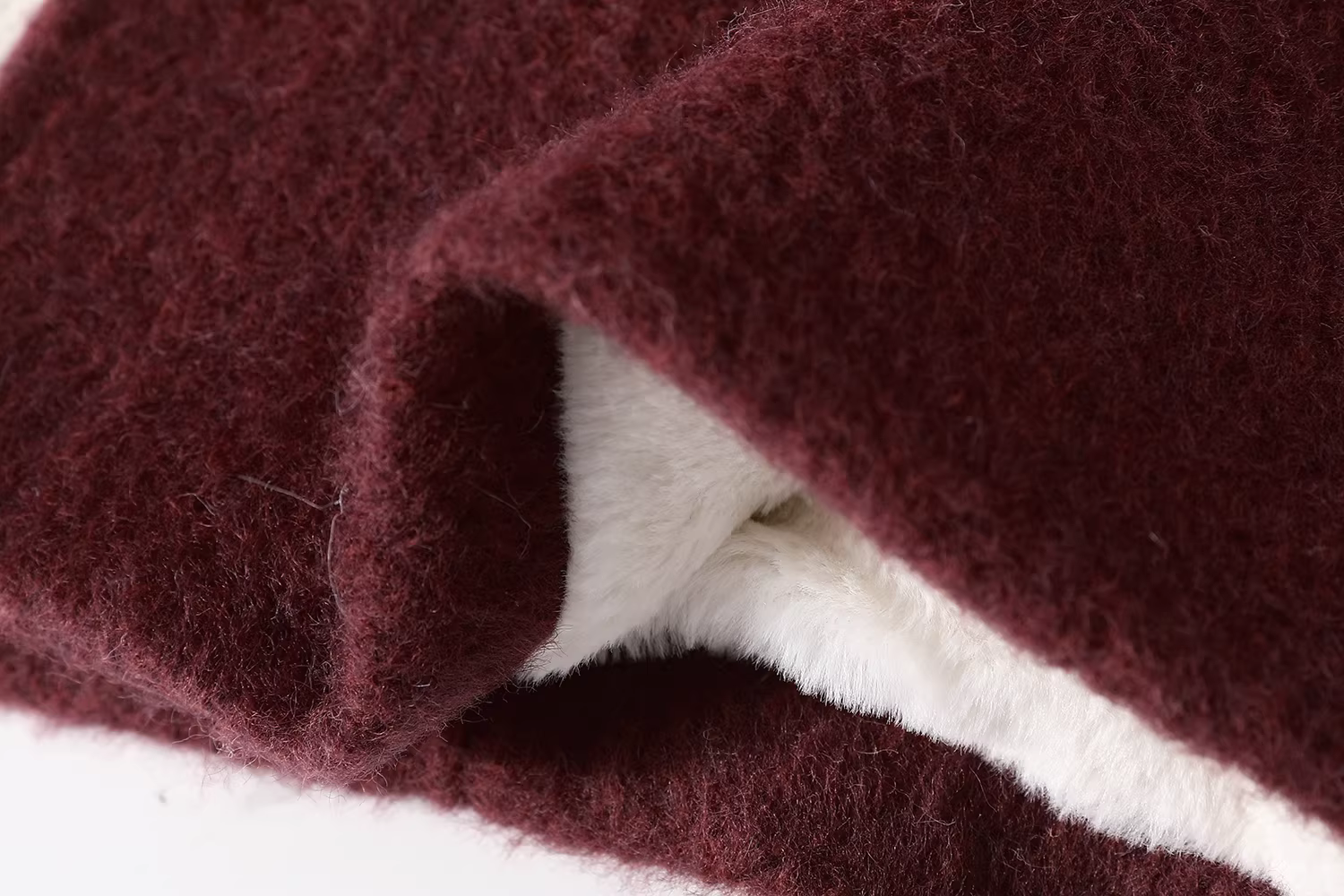 Áo khoác len hai mặt màu đỏ, dài vừa phải, dày và lót lông cừu, áo khoác len dành cho nữ, mùa đông, cao cấp và siêu phong cách.