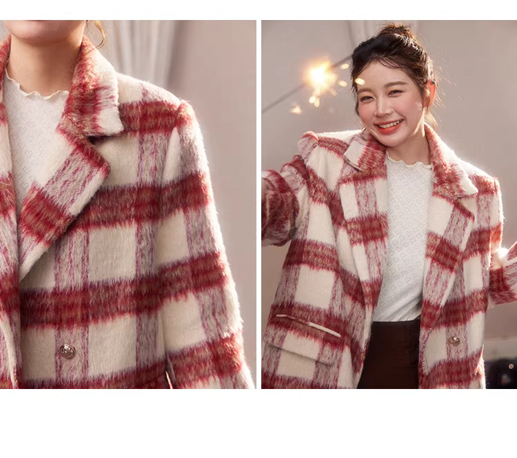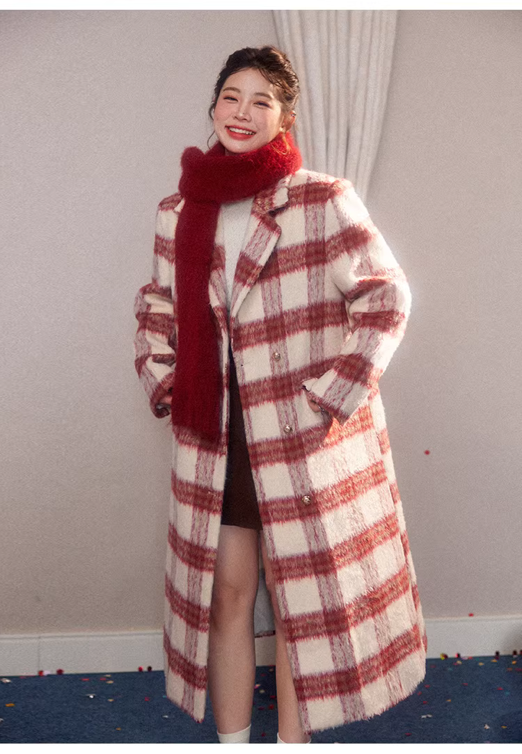 - Áo khoác len kẻ sọc dành cho nữ cỡ lớn, thời trang, dáng rộng, dày dặn, tôn dáng, áo khoác dài có cổ lật.