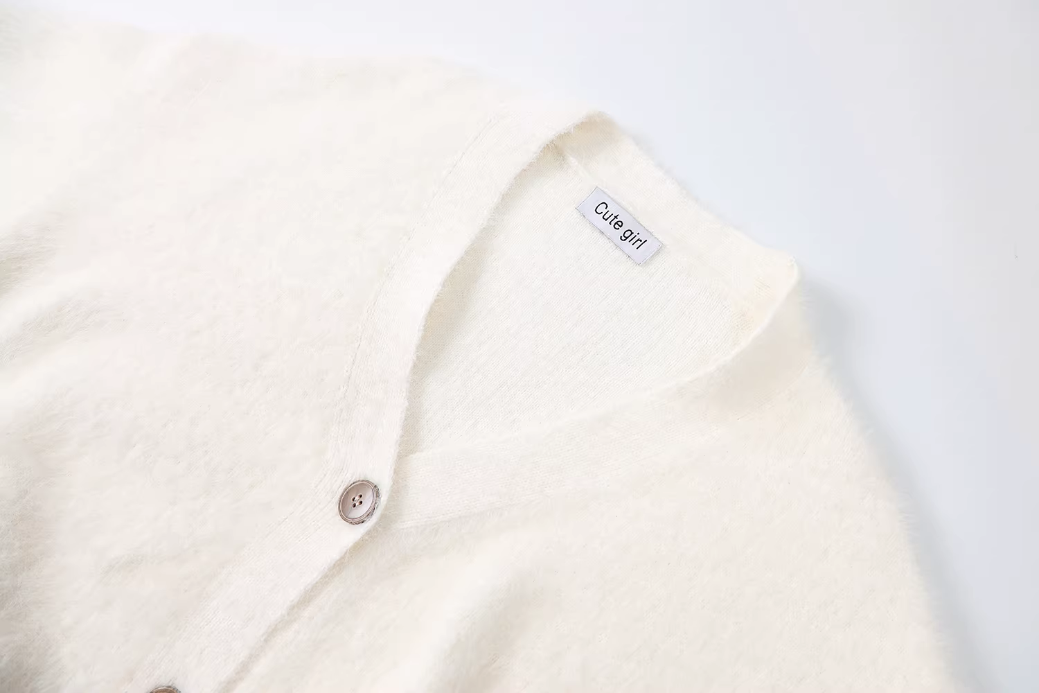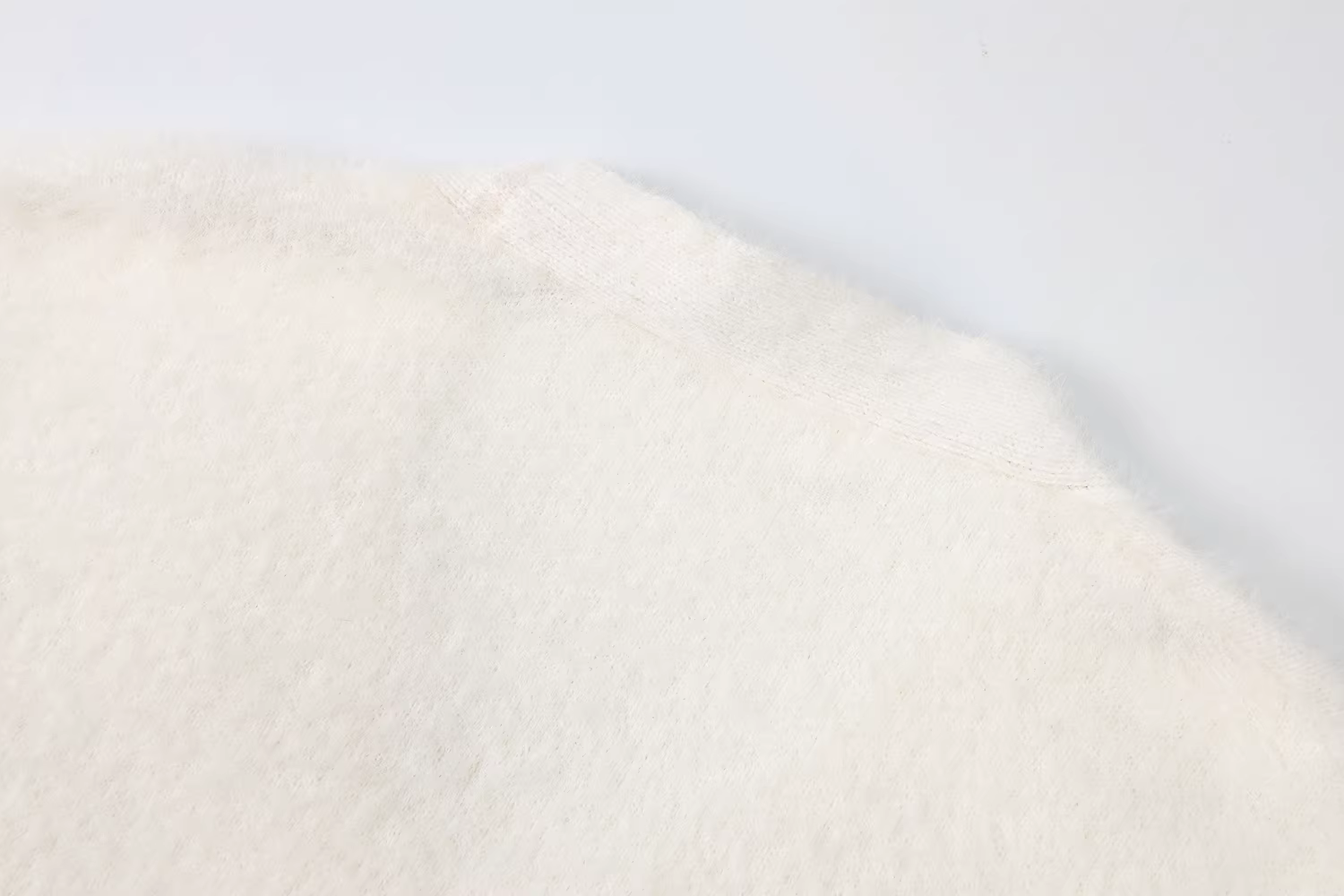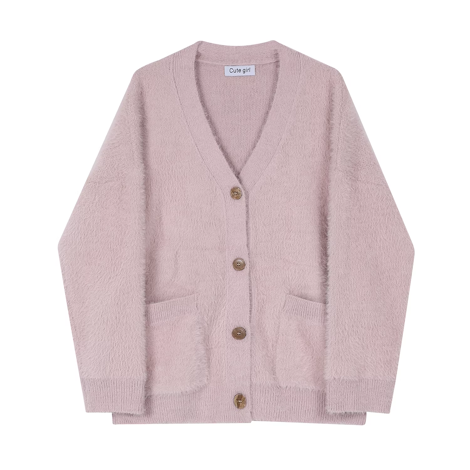 - Áo khoác len lông chồn cổ chữ V dễ thương dành cho nữ, mùa thu đông 2025, kiểu dáng rộng, chất liệu dày dặn.