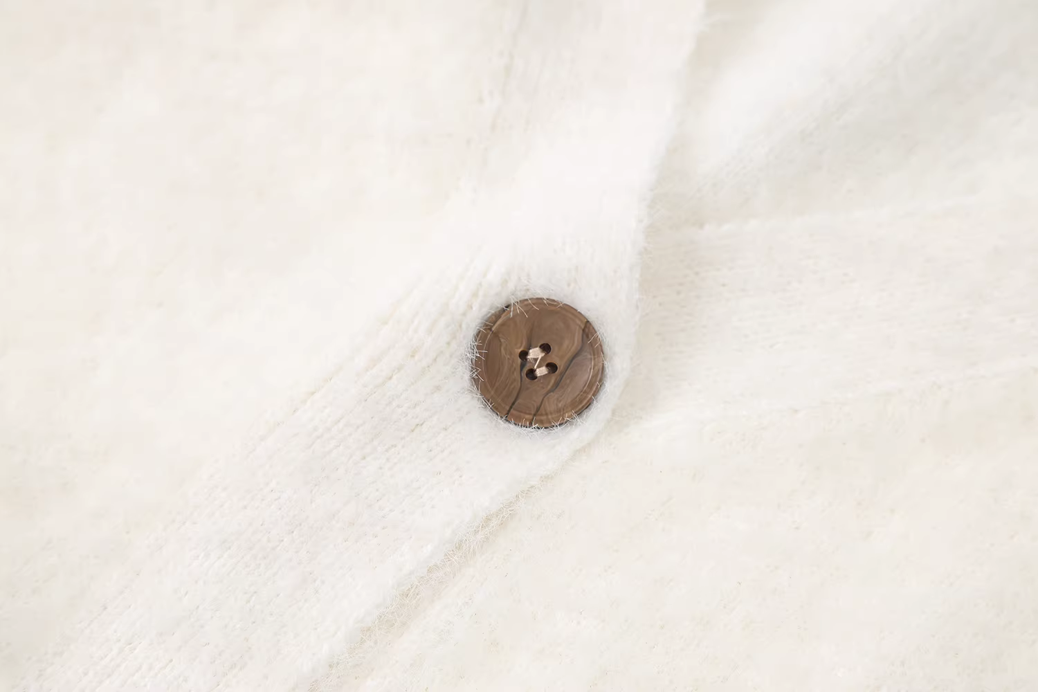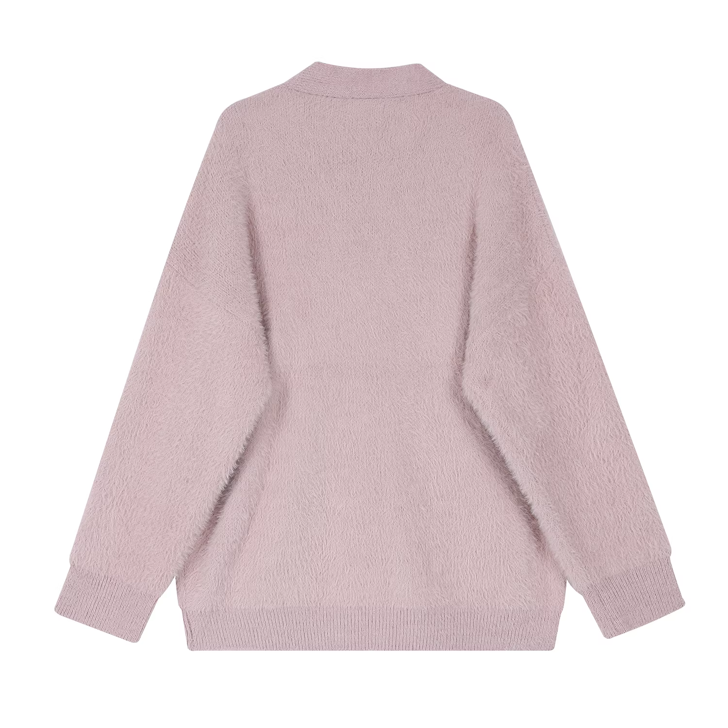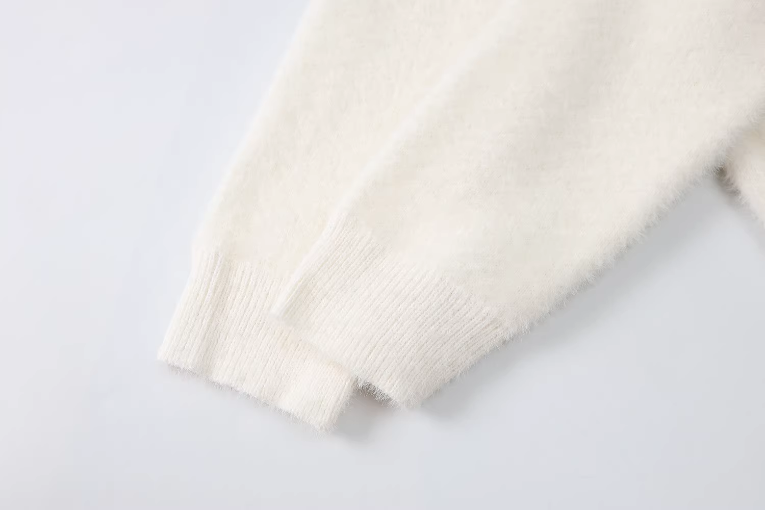 - Áo khoác len lông chồn cổ chữ V dễ thương dành cho nữ, mùa thu đông 2025, kiểu dáng rộng, chất liệu dày dặn.