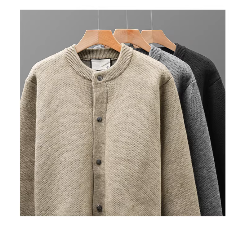 - Áo khoác len nam kiểu dáng cổ điển OMZM, chất liệu dày dặn, phong cách Mỹ, cổ tròn, tay áo trễ vai, dáng rộng, chất liệu len dệt kim.