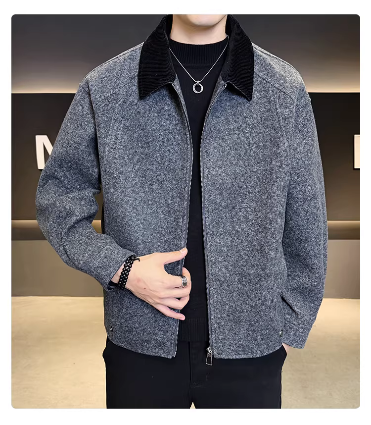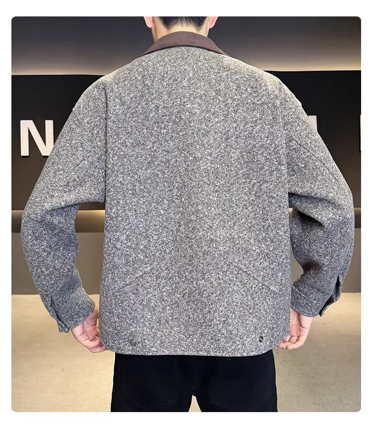 - Áo khoác len nam phối vải, dáng rộng, ngắn, thời trang, đa năng, mùa thu đông 2025
