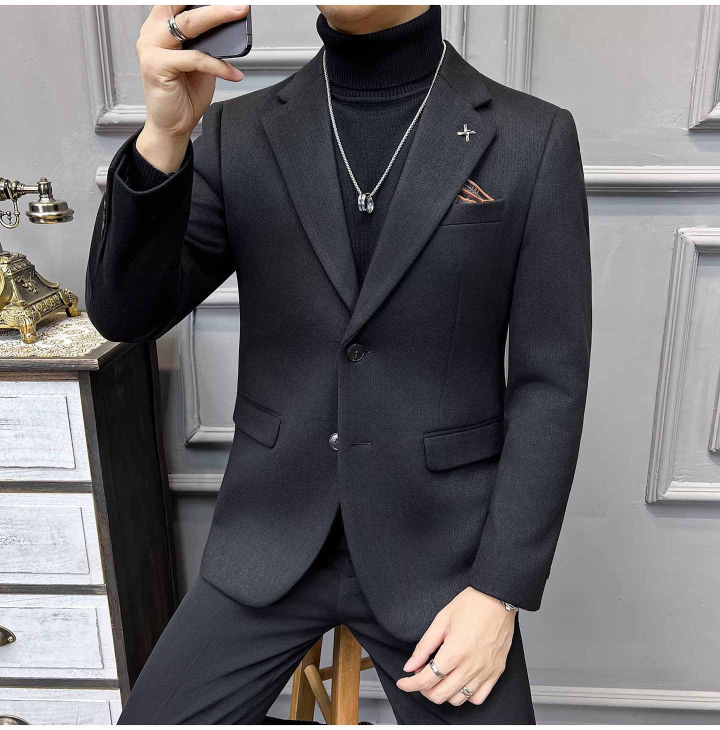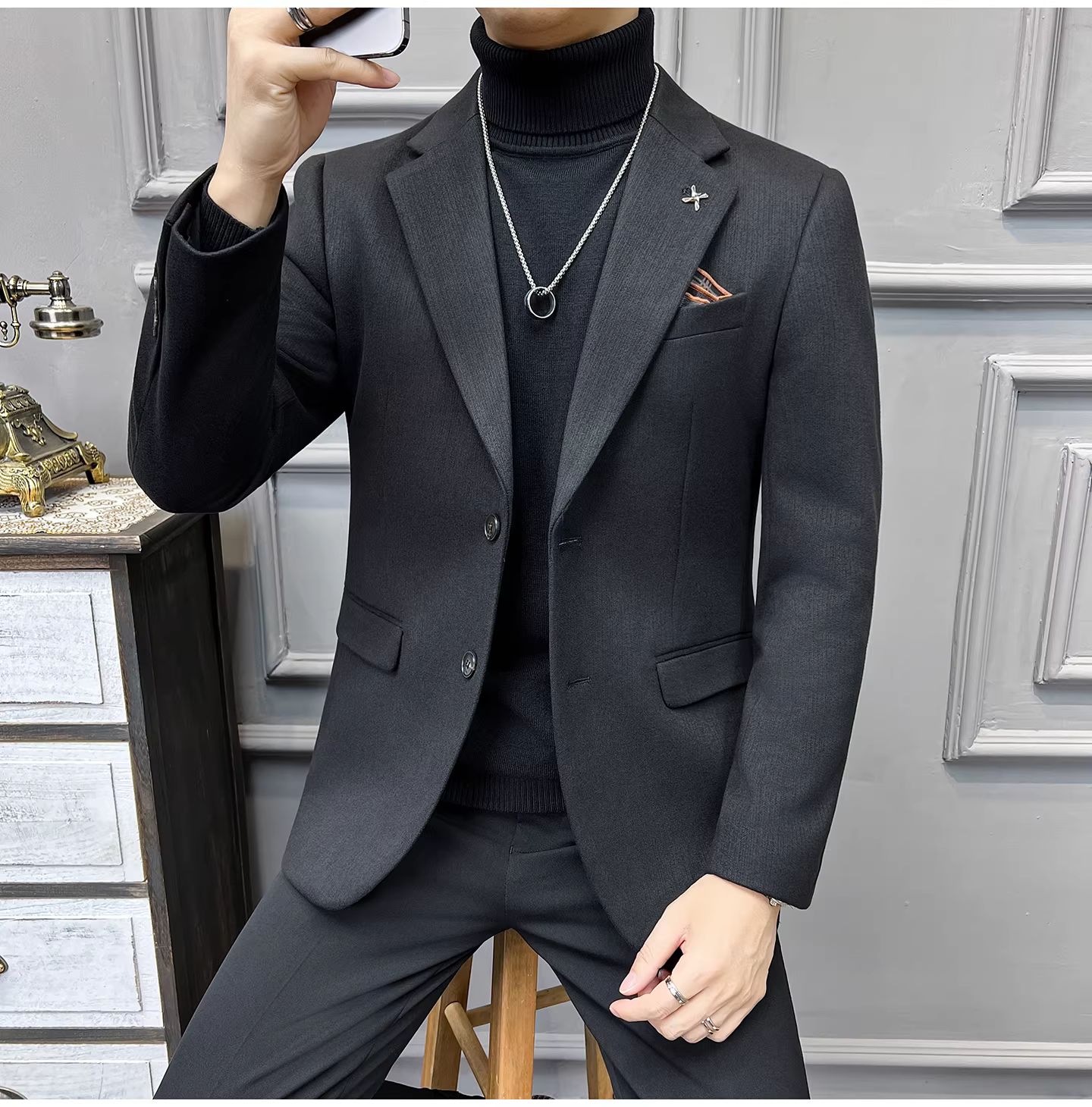 - Áo khoác len sọc tối màu dành cho nam, mùa thu đông, dày dặn, ấm áp, thời trang, hợp xu hướng, ôm dáng, dễ chăm sóc, kiểu dáng vest.
