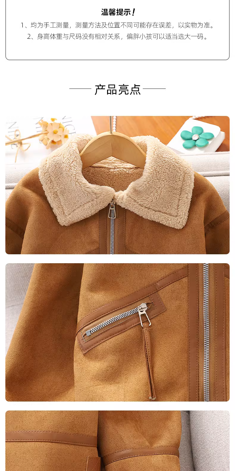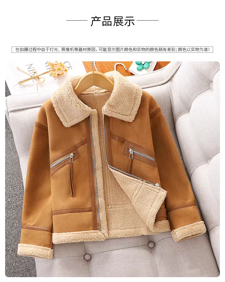 - Áo khoác lông cừu lót lông tích hợp cho bé gái, áo khoác dày giữ ấm cho bé gái lớn, kiểu mới thu đông 2025, hàng cao cấp.