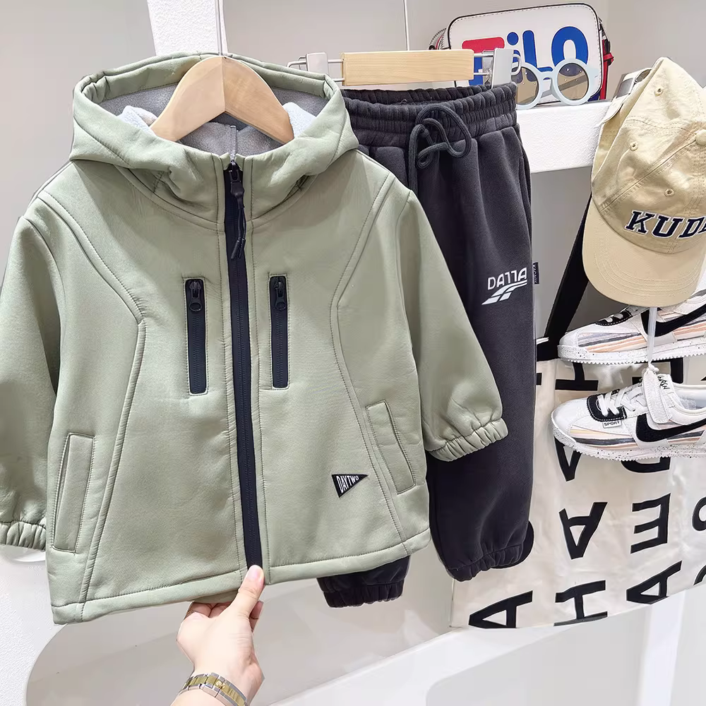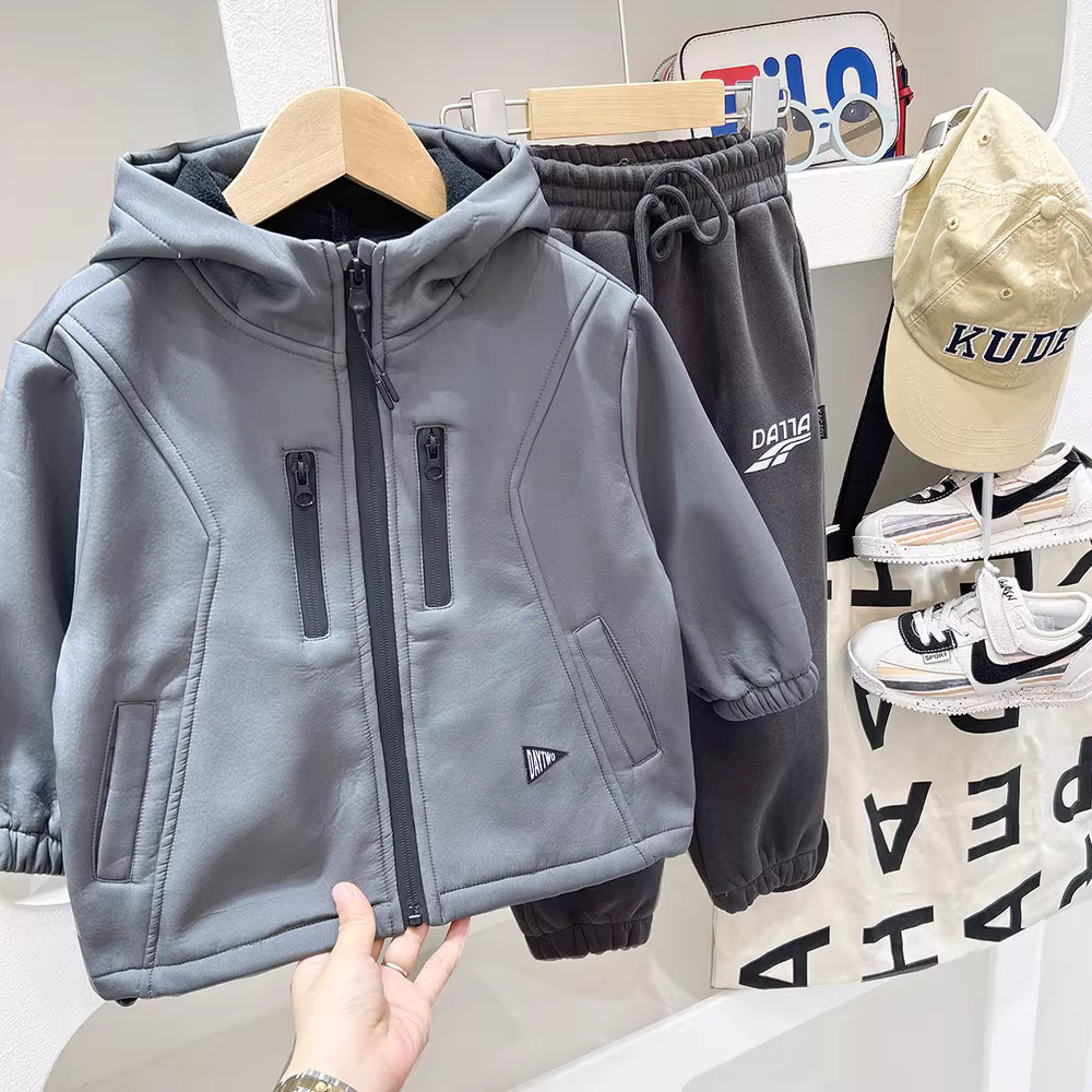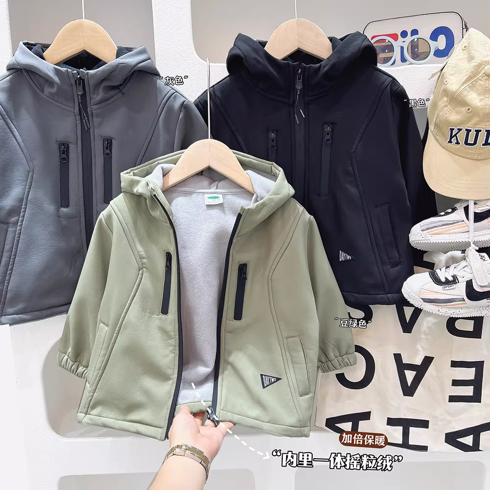 Áo khoác lông cừu tất cả trong một dành cho trẻ em, phong cách thu đông, quần áo leo núi tổng hợp dành cho bé trai, áo khoác chống gió, áo khoác mềm dày dặn và ấm áp