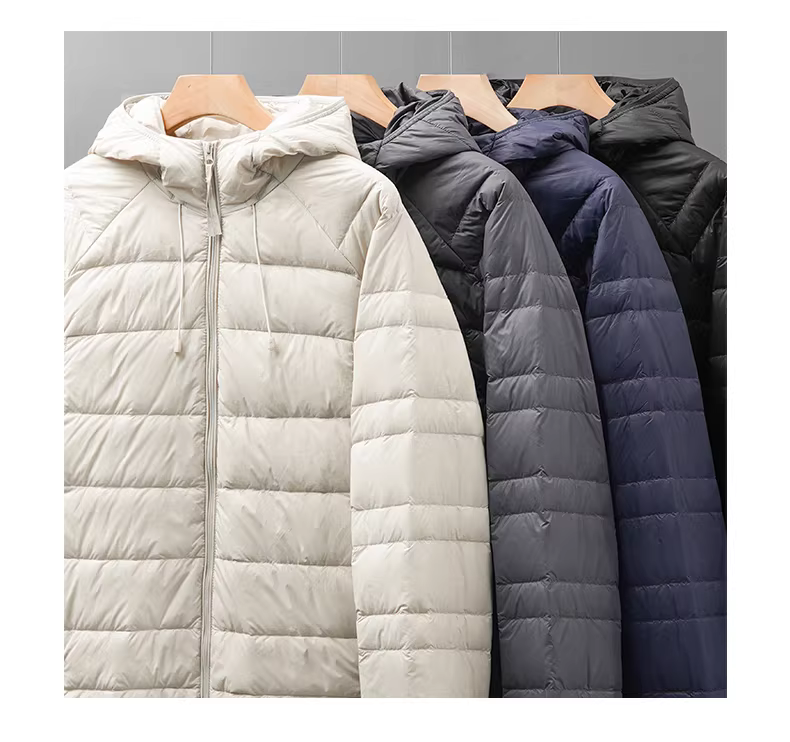 Áo khoác lông vũ 90% nguyên chất dành cho nam, áo khoác có mũ trùm đầu có lớp lót bên trong nhẹ và ấm áp, chống lạnh mùa đông 2025.