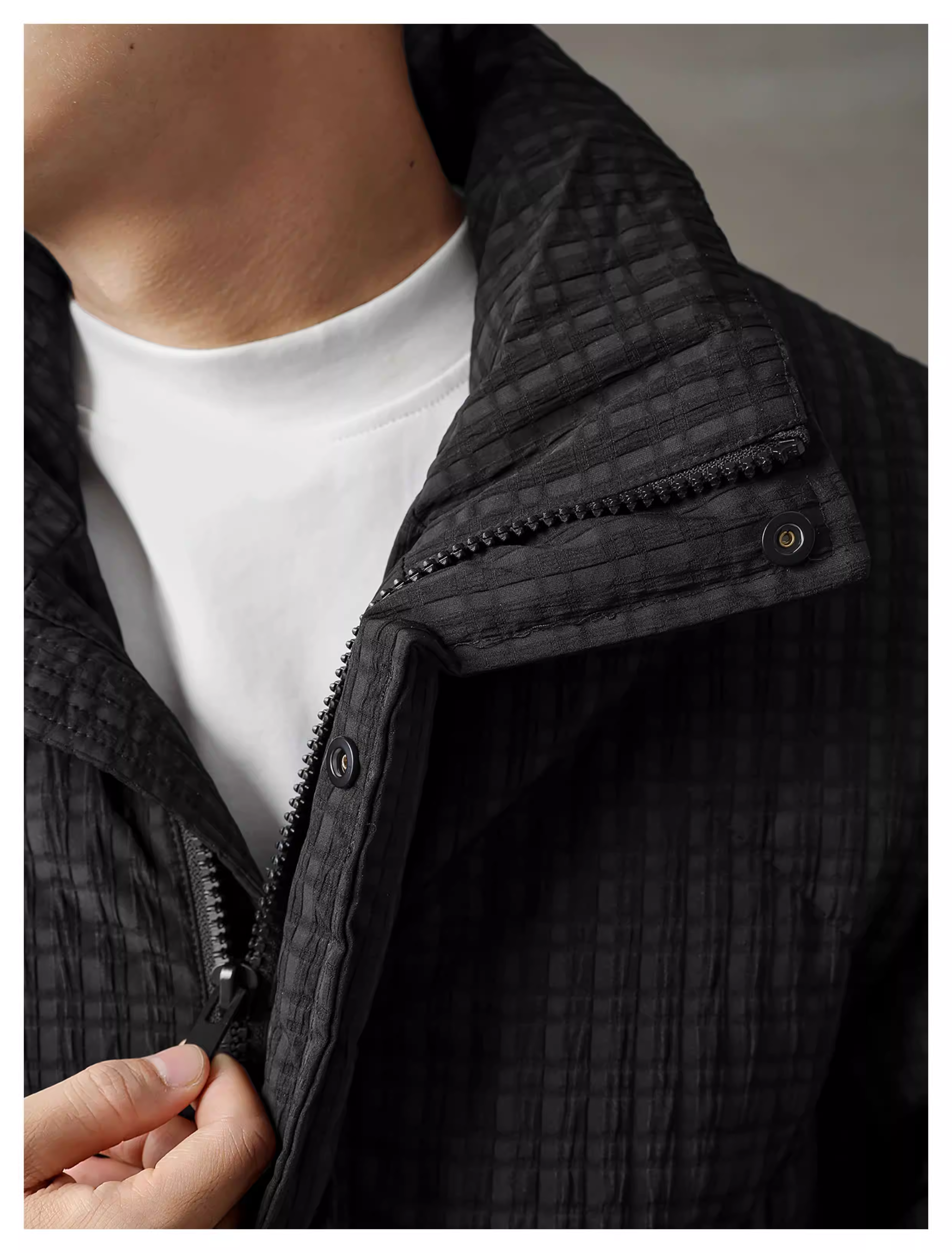 Áo khoác lông vũ cao cấp có họa tiết màu đen LUUD dành cho nam, áo khoác phao dày cổ đứng dày dặn hợp thời trang mùa đông.