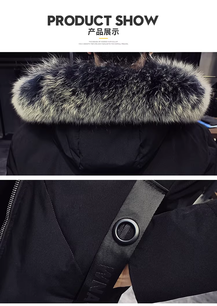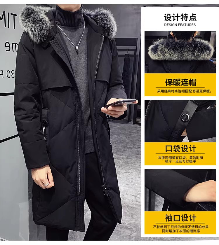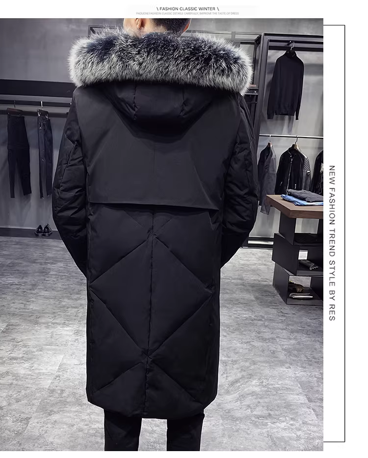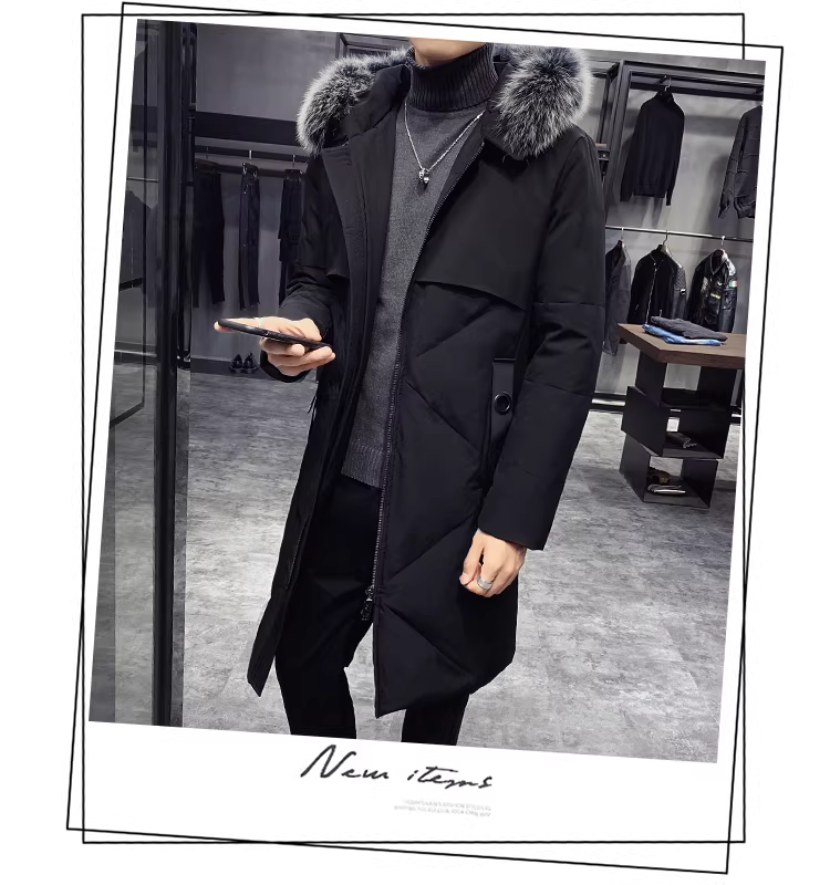 - Áo khoác lông vũ có cổ lông cáo dành cho nam, áo khoác dài qua đầu gối, kiểu dáng dày dặn ấm áp mùa đông, đa năng và chất lượng cao.