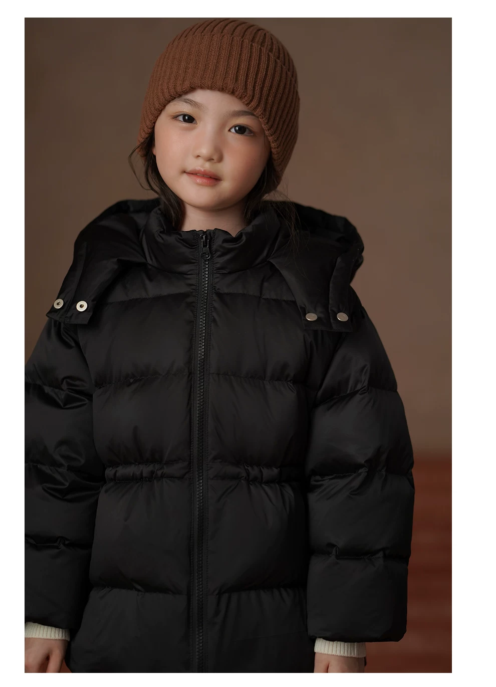 - Áo khoác lông vũ màu đen dành cho trẻ em phong cách Hàn Quốc áo khoác lông vũ dáng rộng có dây thắt lưng kiểu dáng mới mùa đông dành cho bé gái