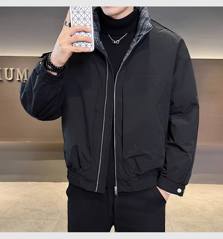 - Áo khoác lông vũ nam cao cấp 90% lông vũ, thiết kế mùa đông 2025, kiểu dáng mới rộng rãi ngắn, cổ đứng, dày dặn và ấm áp.