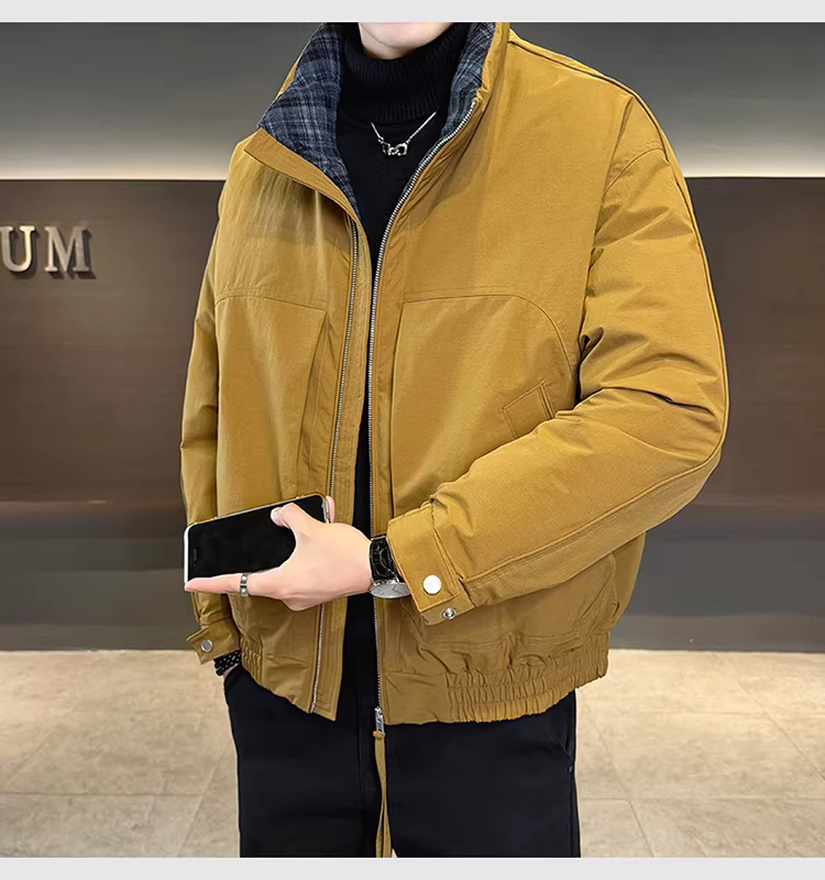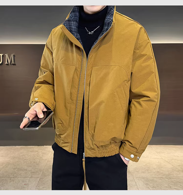 Áo khoác lông vũ nam cao cấp 90% lông vũ, thiết kế mùa đông 2025, kiểu dáng mới rộng rãi ngắn, cổ đứng, dày dặn và ấm áp.