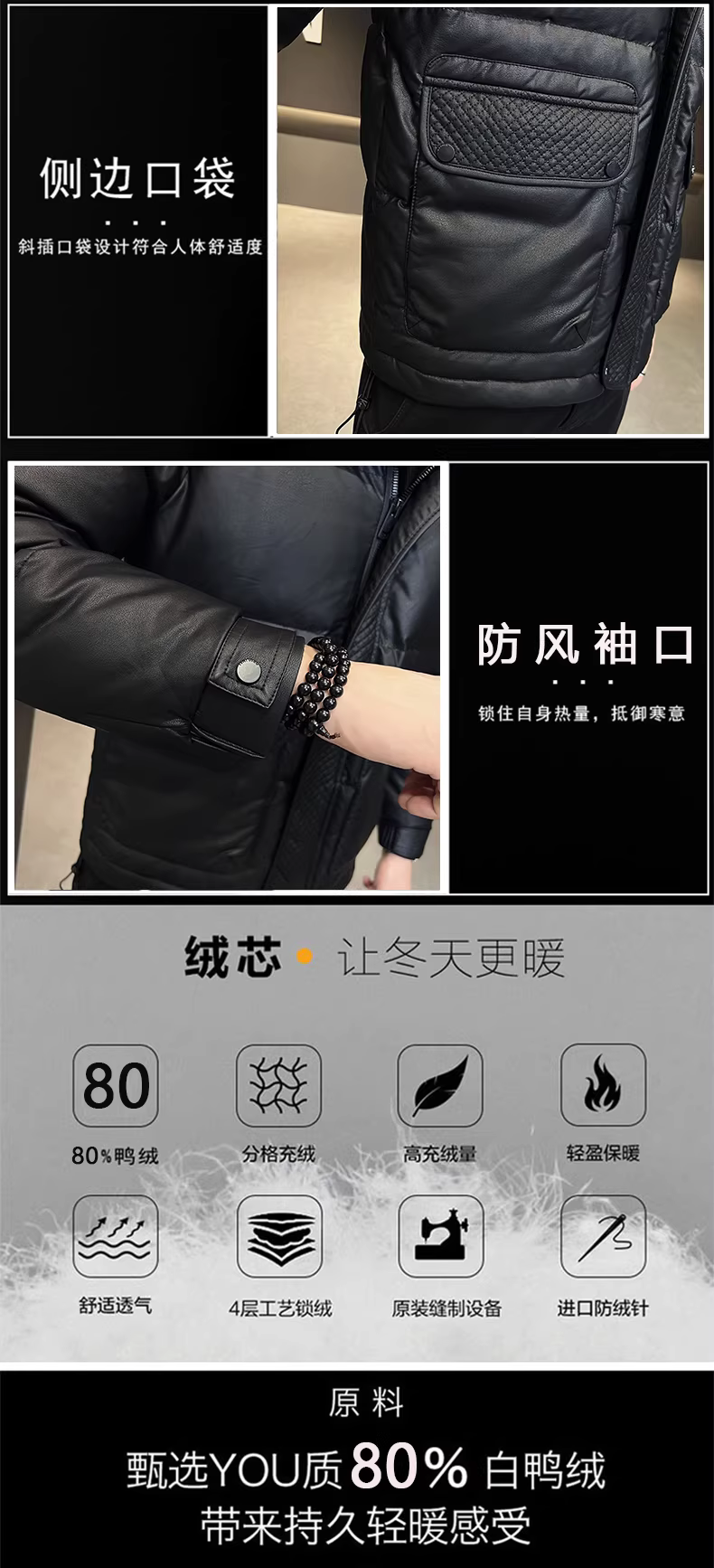 - Áo khoác lông vũ nam chất liệu giả da PU, kiểu dáng mùa đông mới, cao cấp, kiểu ngắn cá tính cổ đứng, lông vũ trắng, ấm áp và dày dặn.