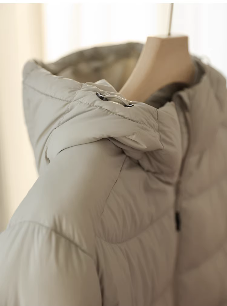 - Áo khoác lông vũ xương cá, phồng mây, nhẹ, giảm béo, ấm áp, có mũ trùm đầu, 90% lông vịt trắng, áo khoác ngắn cho nữ, mới mùa thu đông