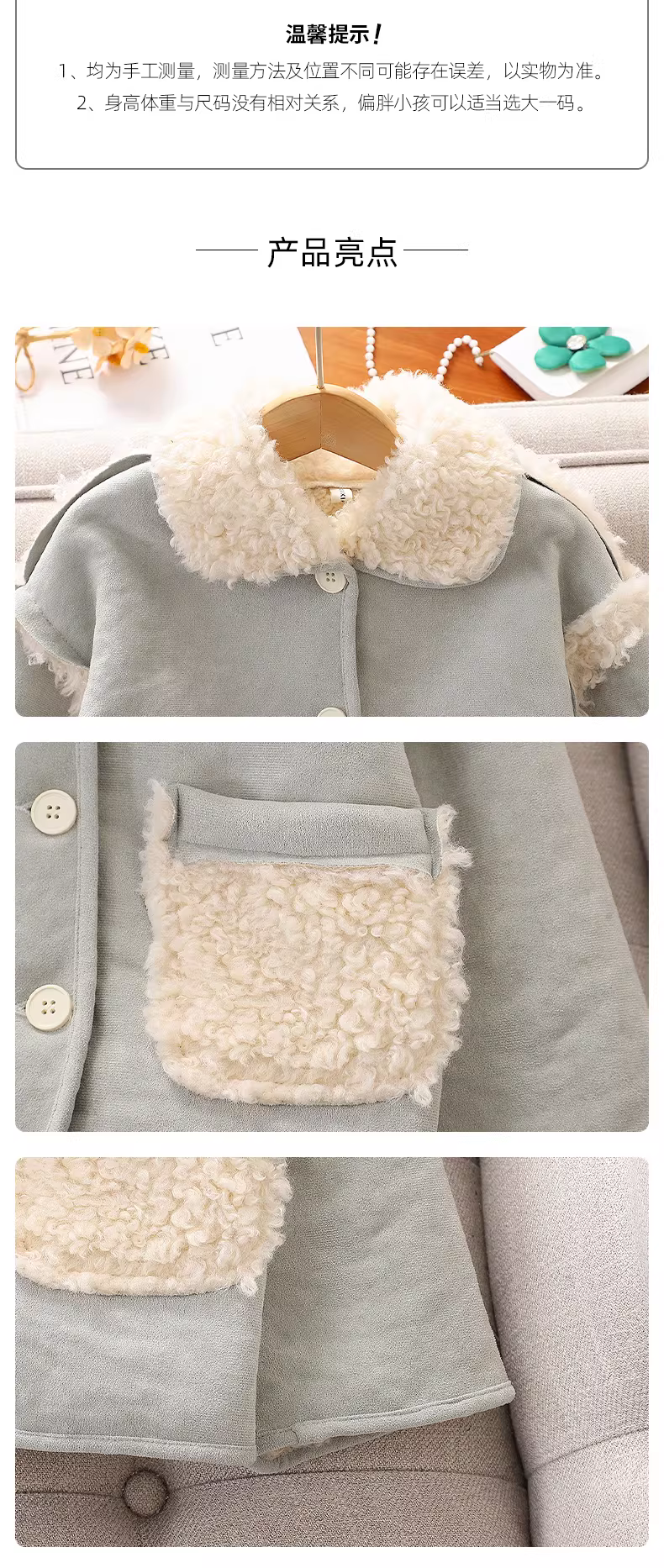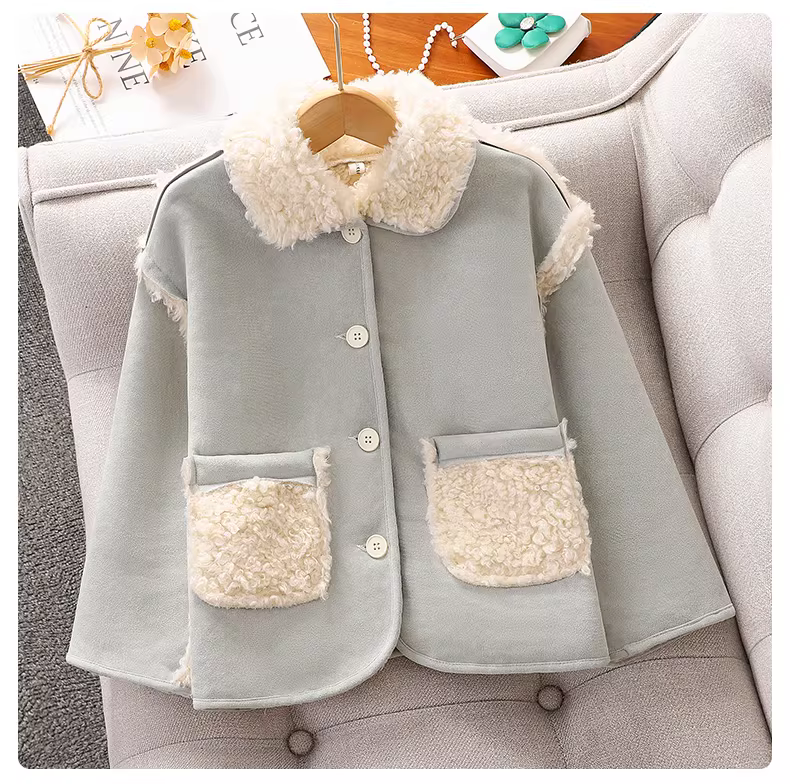 - Áo khoác lót lông cừu cho bé gái mùa thu đông, áo khoác da dày tích hợp lông thú dành cho bé gái lớn, quần áo trẻ em mới năm 2025, áo khoác cotton ấm áp.