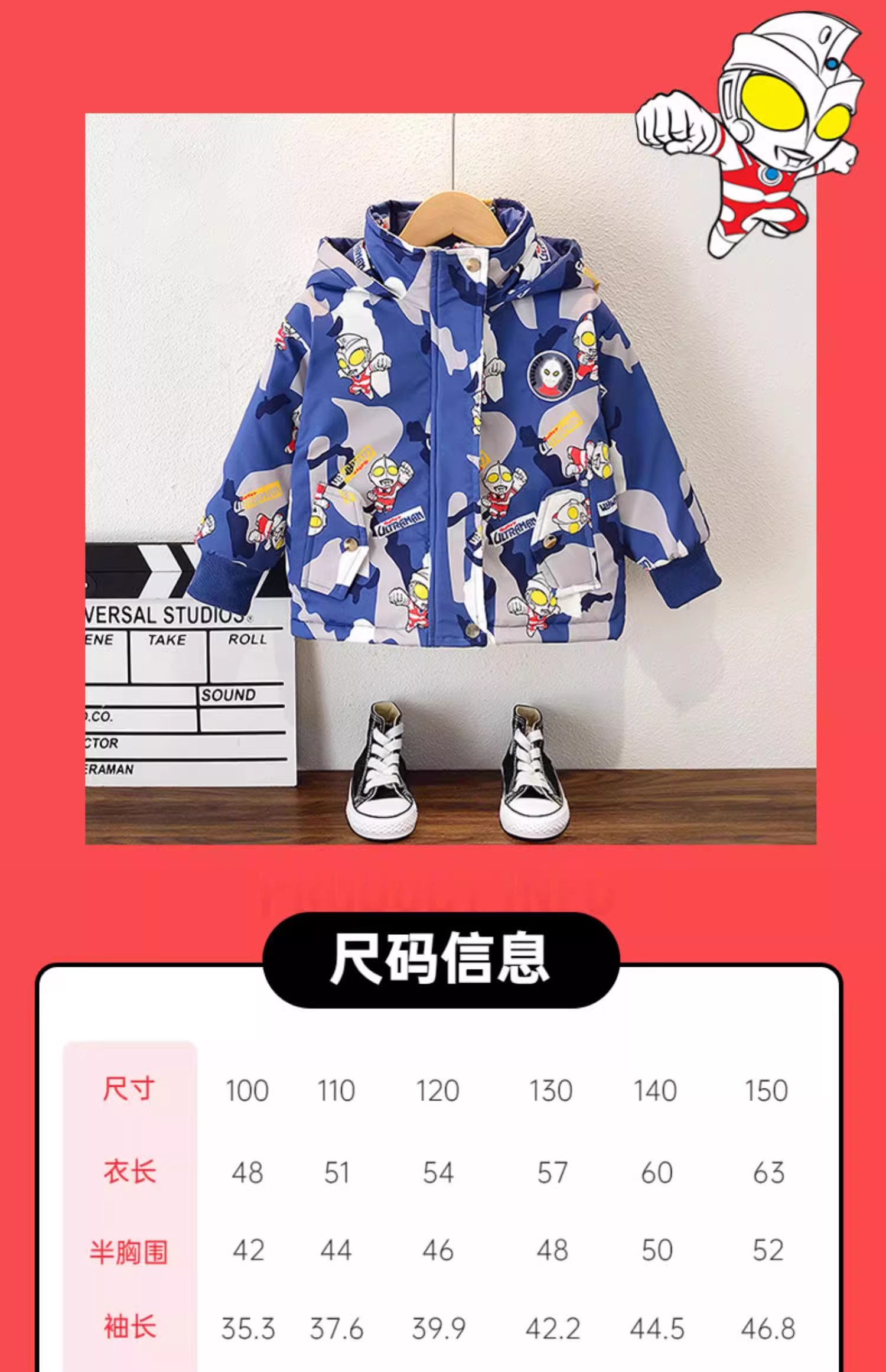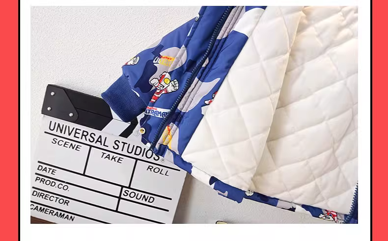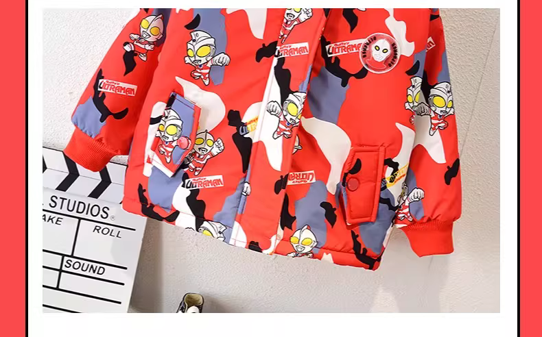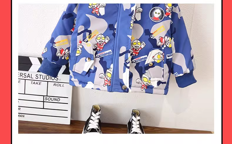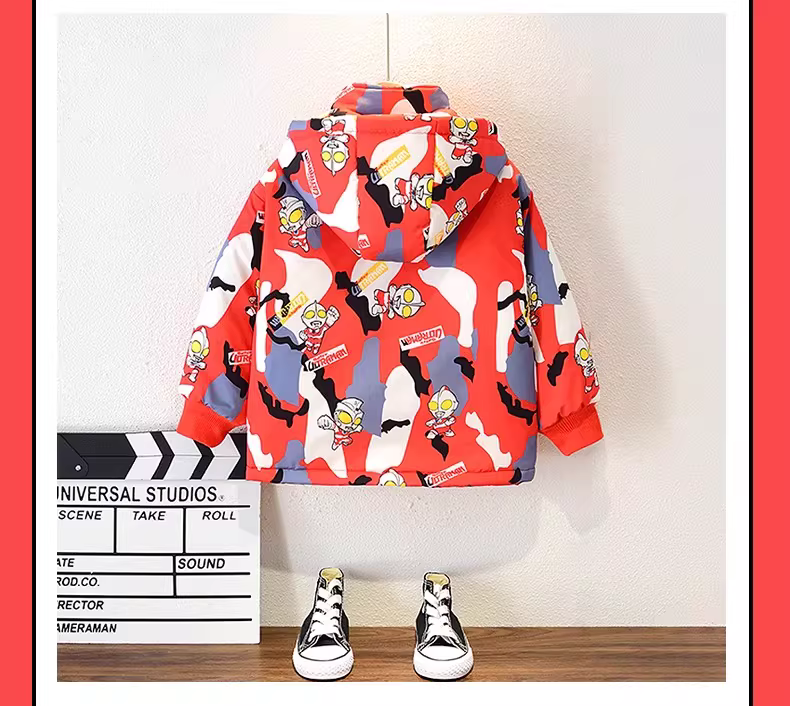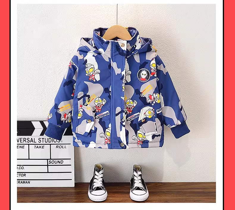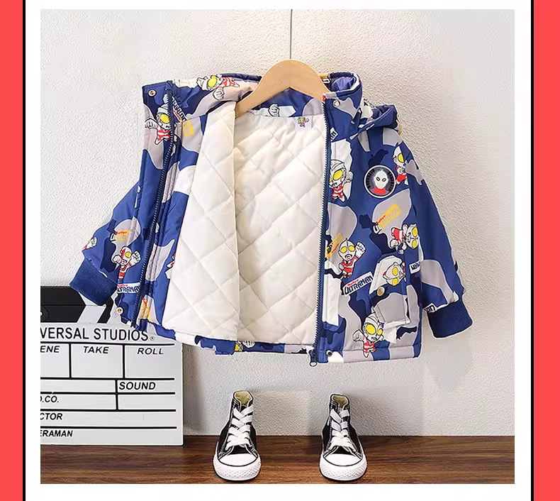 - Áo khoác lót lông cừu dành cho bé trai Ultraman ba lớp, áo gió dày dặn mới dành cho trẻ em mùa đông, áo khoác cotton mùa thu đông.