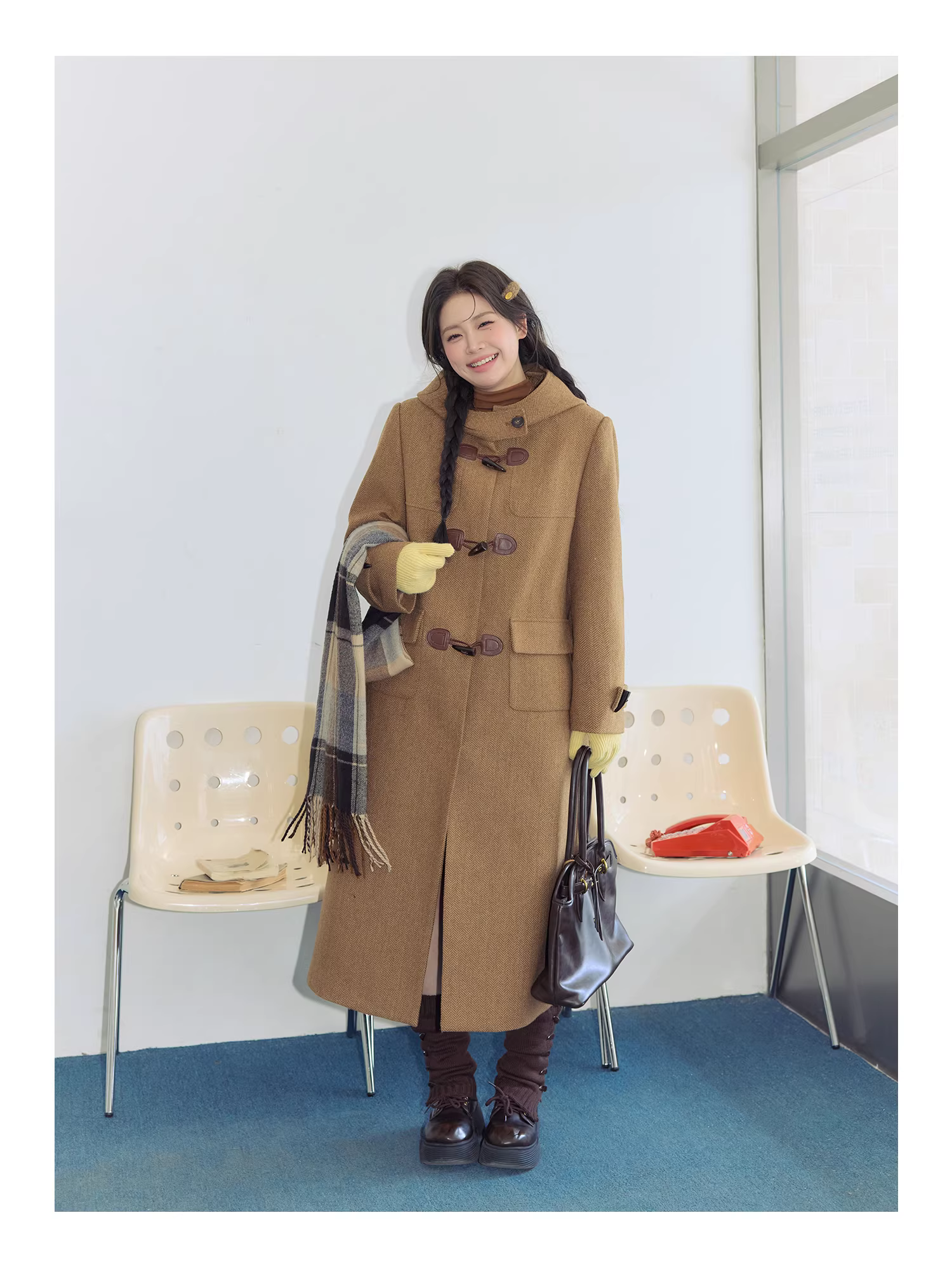 Áo khoác mùa đông cỡ lớn cho nữ, áo khoác len cao cấp cổ điển có khuy cài dành cho mùa thu đông.