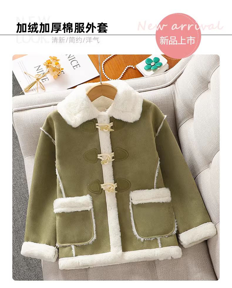 Áo khoác mùa đông dày dặn lót lông phong cách Hàn Quốc dành cho bé gái, mẫu mới 2025, áo khoác cotton thường ngày cho bé gái lớn, áo khoác ngoài mùa đông cho trẻ em.