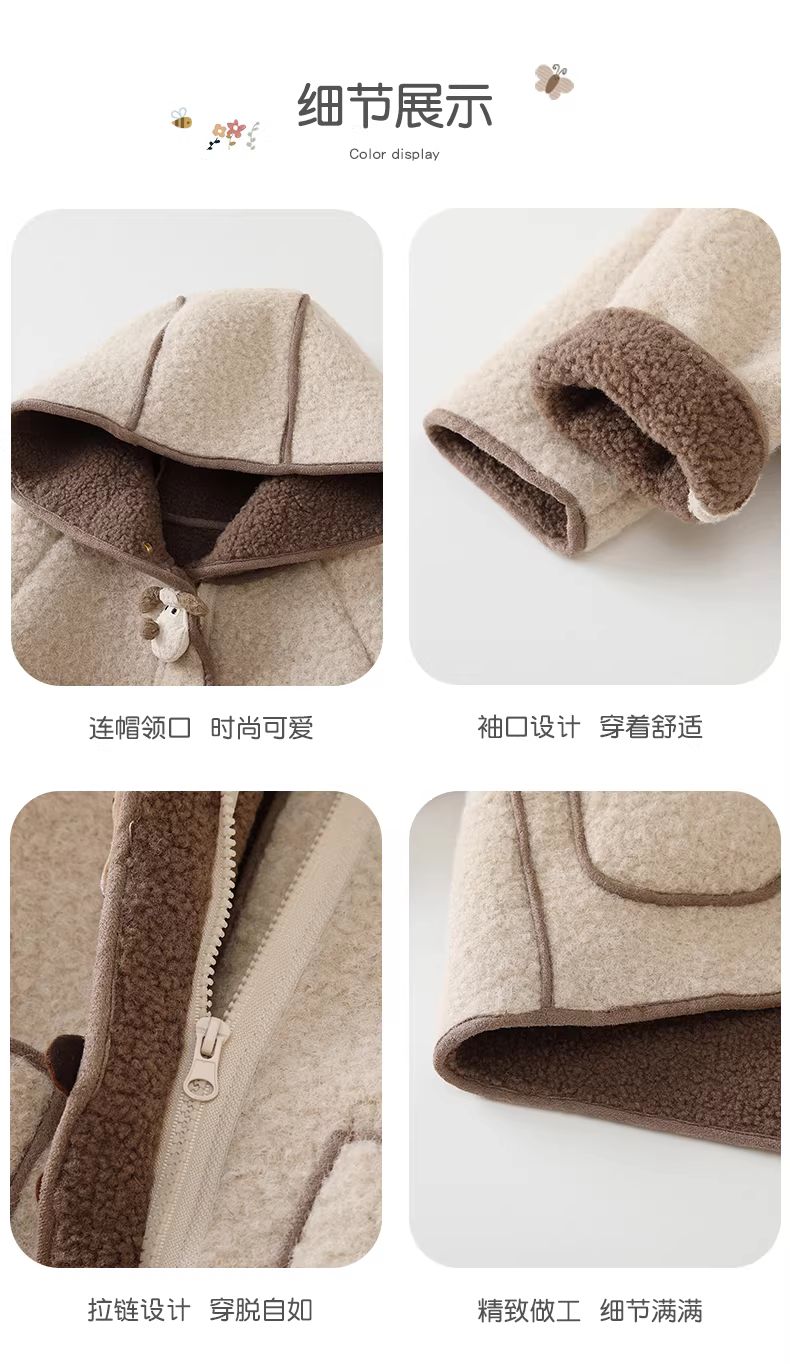 - Áo khoác mùa đông Fanhle cho bé gái 2025, thời trang mới, áo ấm lót lông cừu cho bé trai mùa thu đông