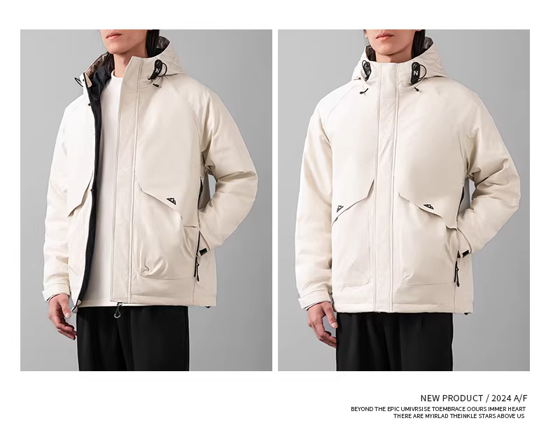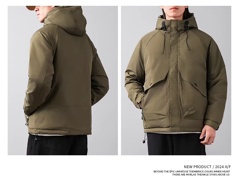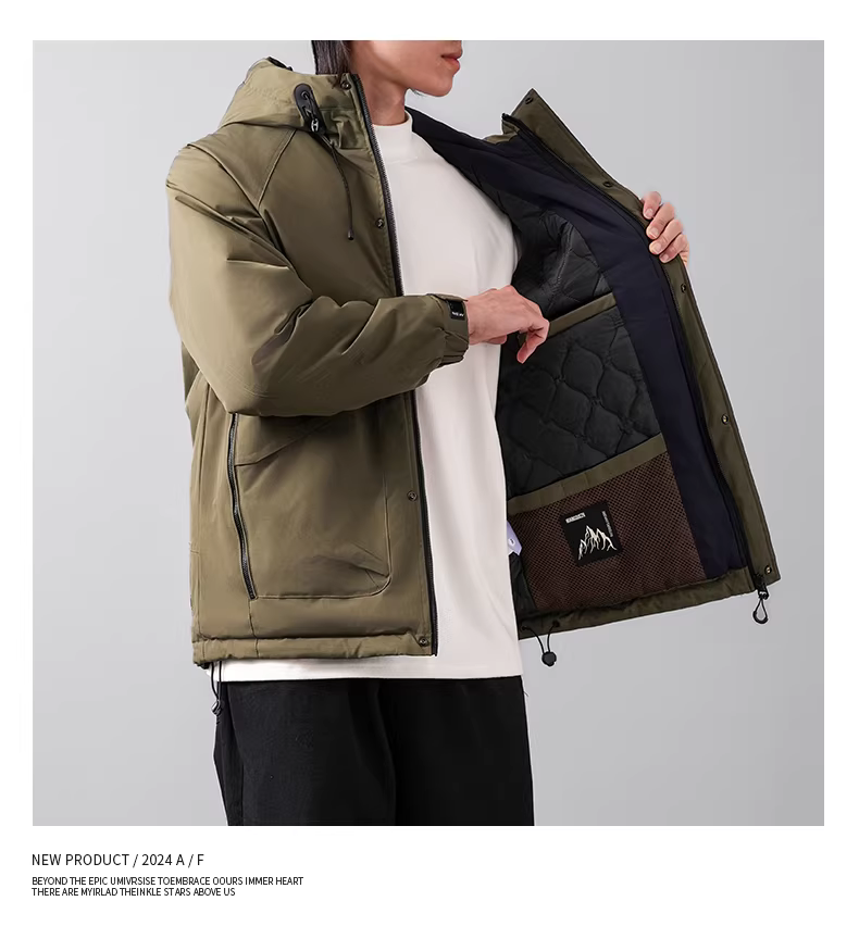 - Áo khoác mùa đông nam dày dặn, áo khoác bảo hộ lao động phong cách Mỹ mới hợp thời trang, dáng rộng, áo khoác cotton có mũ trùm đầu ấm áp.