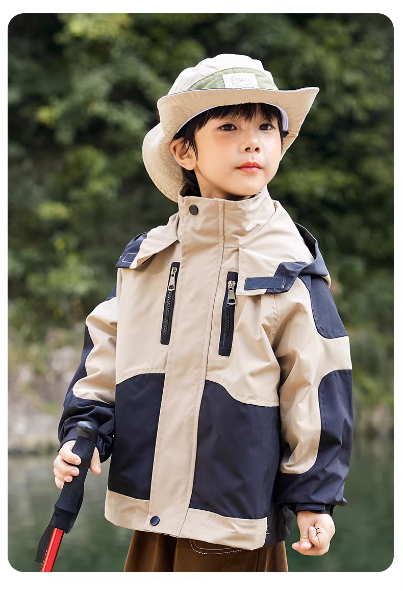 - Áo khoác mùa xuân cho trẻ em, áo gió cho bé trai, áo khoác có mũ trùm đầu ba trong một màu sắc phối hợp cho bé trai, quần áo mát mẻ và sành điệu cho trẻ em.