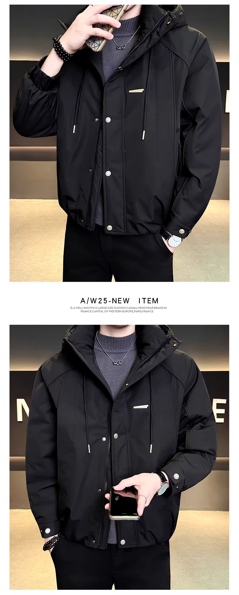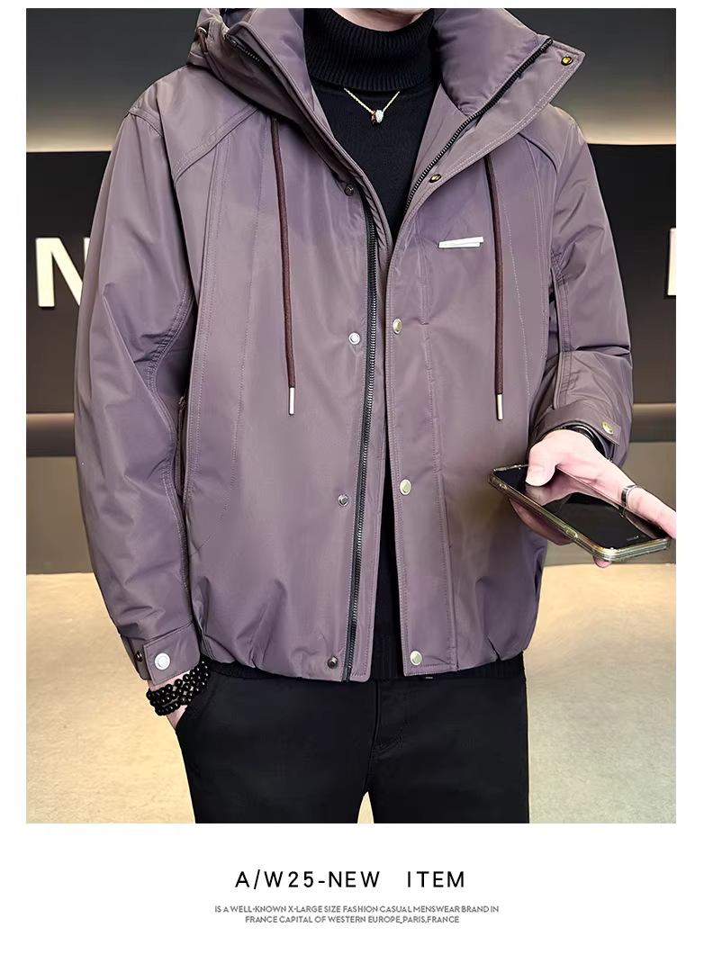 - Áo khoác nam có mũ trùm đầu, kiểu mới mùa đông 2025, dày dặn, đa năng, dáng ngắn, chất lượng cao, kiểu áo khoác công nhân.