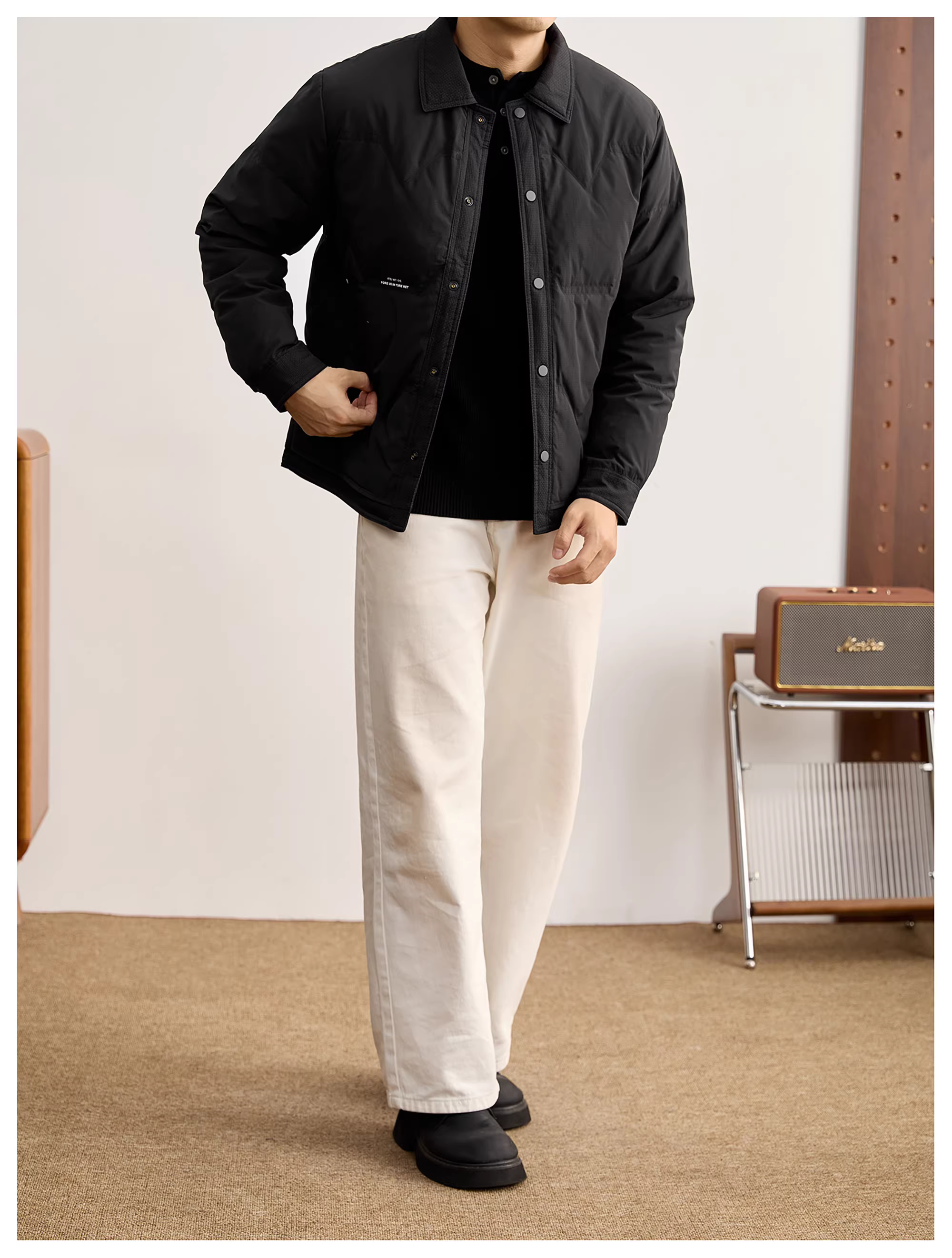 - Áo khoác nam LUUD nhẹ, ấm, lông vũ vịt, chống gió, mùa đông, thêu logo chữ cái, thời trang, thương hiệu hợp xu hướng, cổ áo lật.