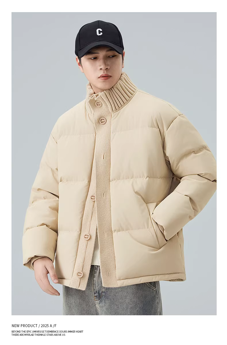 - Áo khoác nam mùa đông 2025 kiểu Mỹ mới, dày dặn, ấm áp, chất liệu cotton phối len nguyên chất, cổ đứng.