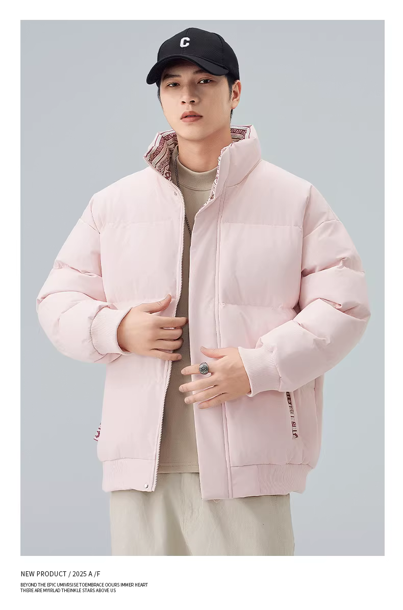 - Áo khoác nam mùa đông dày dặn bằng cotton, cổ đứng, lót lông cừu, ấm áp, dáng rộng, màu trơn.