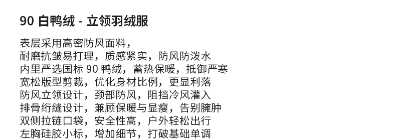 - Áo khoác nam mùa đông với 90% lông vịt trắng, dày dặn giữ ấm, kiểu dáng ngắn chống thấm ba lớp với cổ đứng.