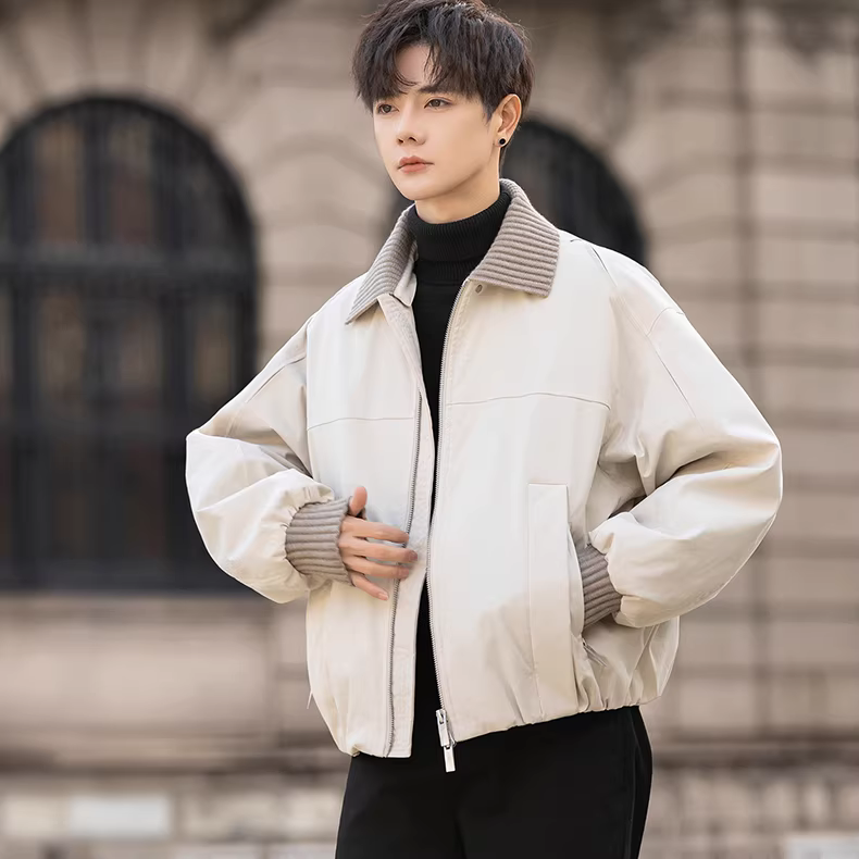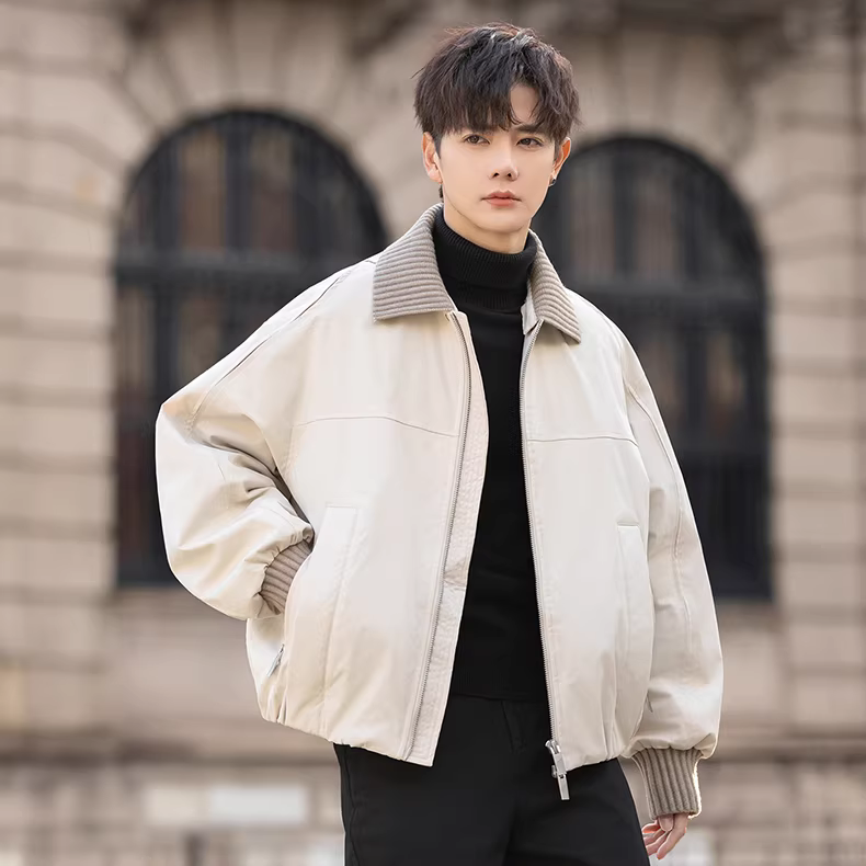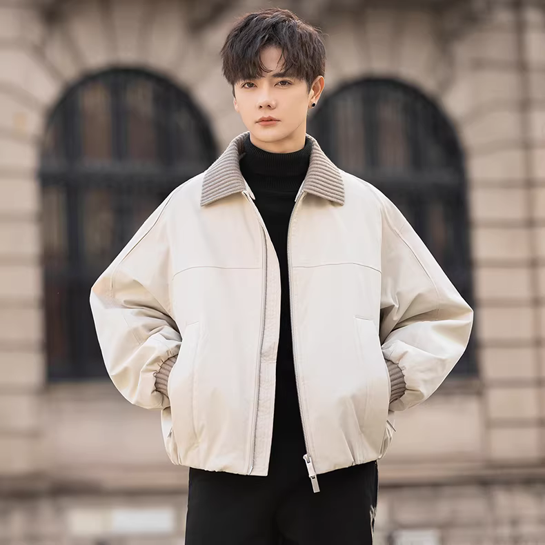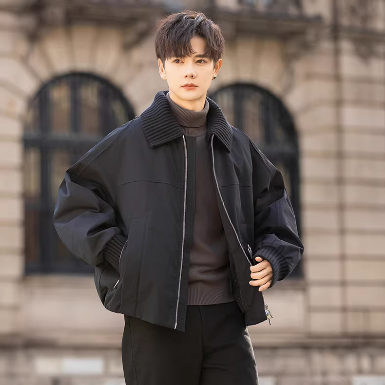 - Áo khoác nam phối len cao cấp 90%, kiểu dáng mới mùa đông 2025, dáng rộng, ngắn, dày dặn.