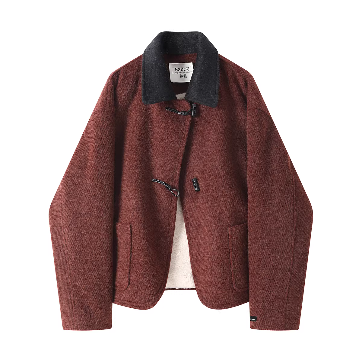 - Áo khoác ngắn bằng len cừu cashmere NSROU dành cho nữ mùa thu đông Áo khoác vải tuýt lót lông theo phong cách Chanel
