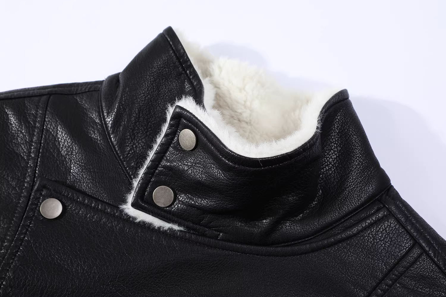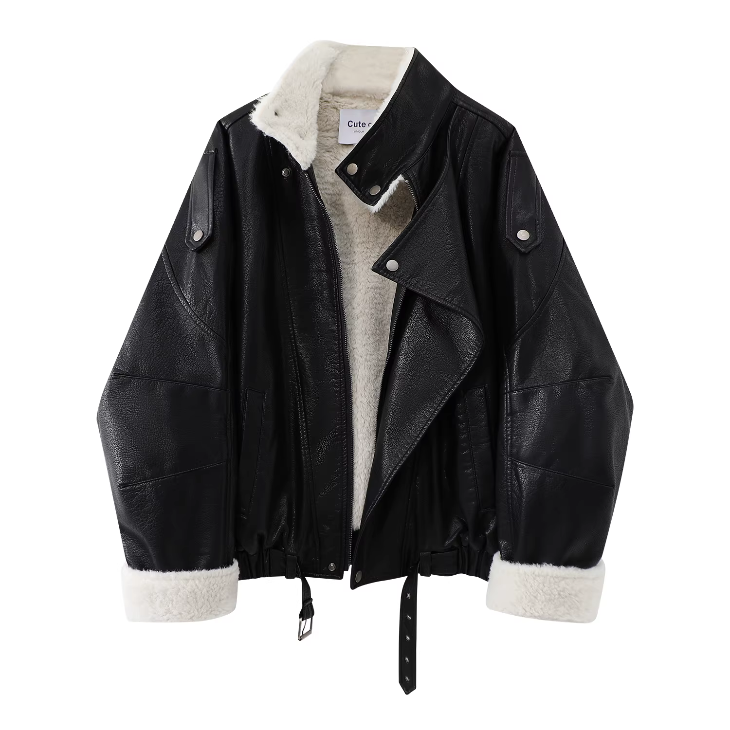 - Áo khoác ngắn có cổ đứng màu cà phê phong cách CuteGirl Melard dành cho nữ, khí chất mùa thu, áo khoác da rộng rãi và đa năng