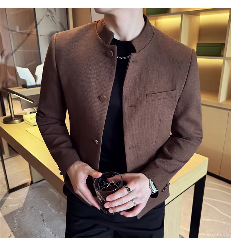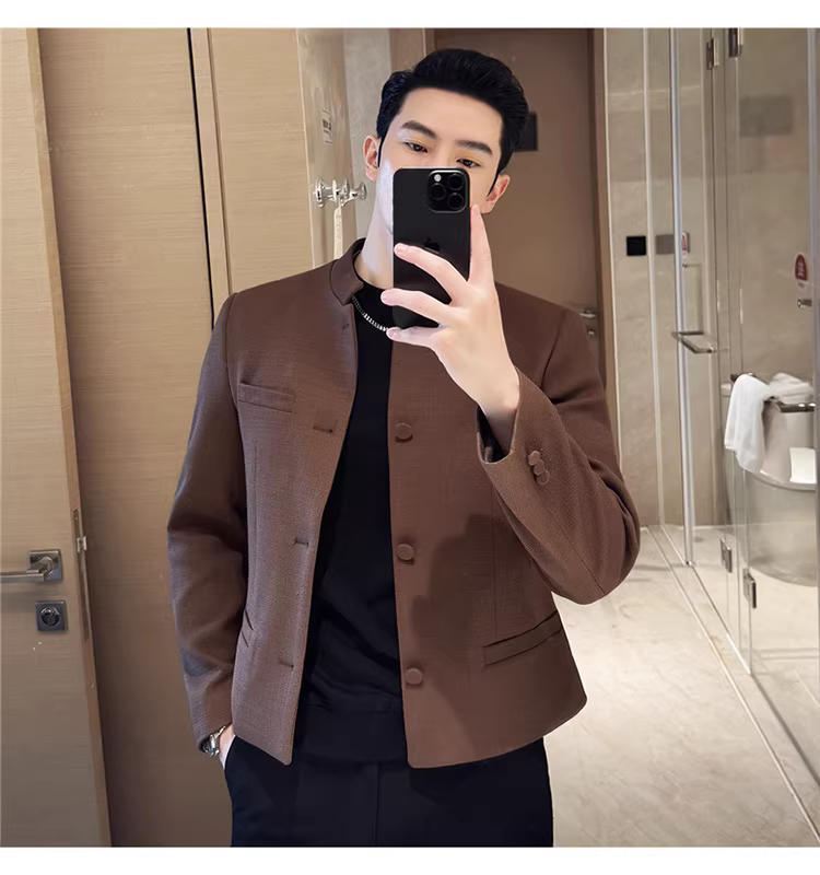 - Áo khoác ngắn cổ đứng phong cách Chanel dành cho nam, thời trang thu đông 2025 mới, kiểu dáng hiện đại, đa năng, lịch lãm, ôm dáng.